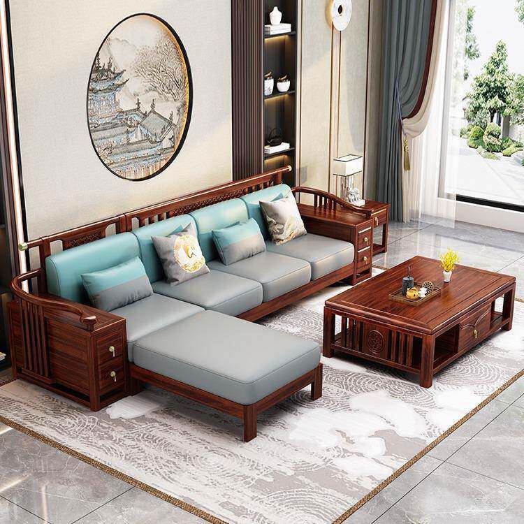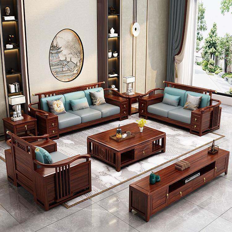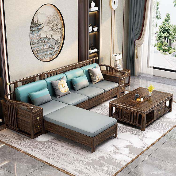新中式沙发乌金木别墅高档客厅家具组合套装冬夏两用储物实木沙发