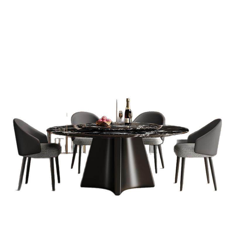 意式超晶石餐桌椅组合家用高级餐桌轻奢酒店饭店微晶石家用带转盘