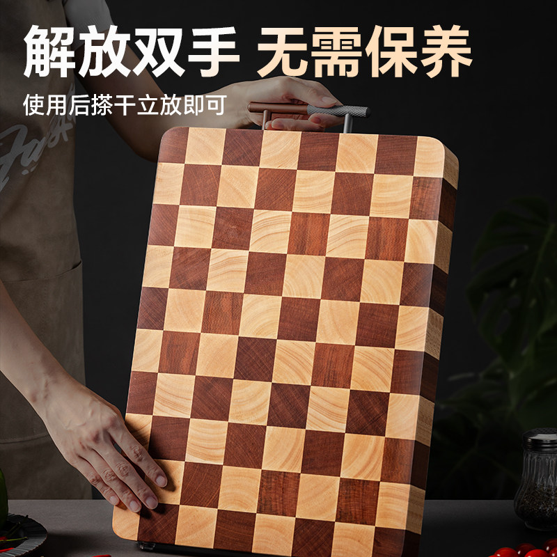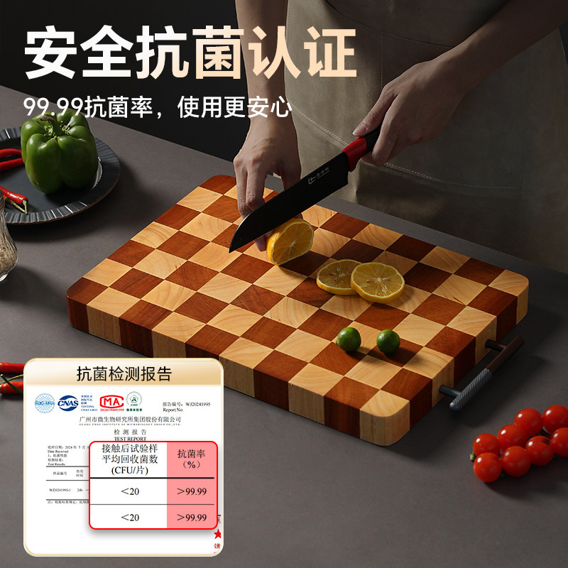 森物社菜板家用切菜板棋盘格实木双面抗菌防霉砧板案板厨房专用