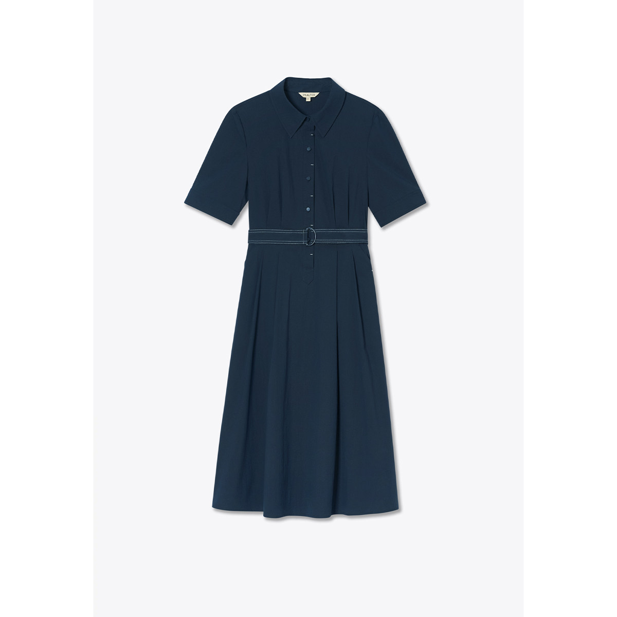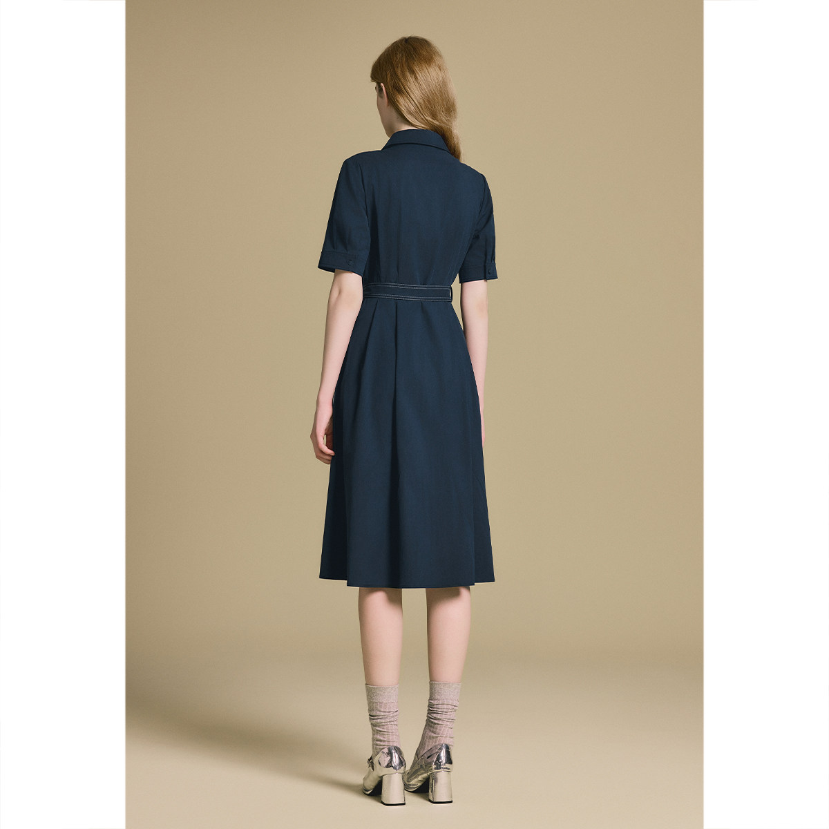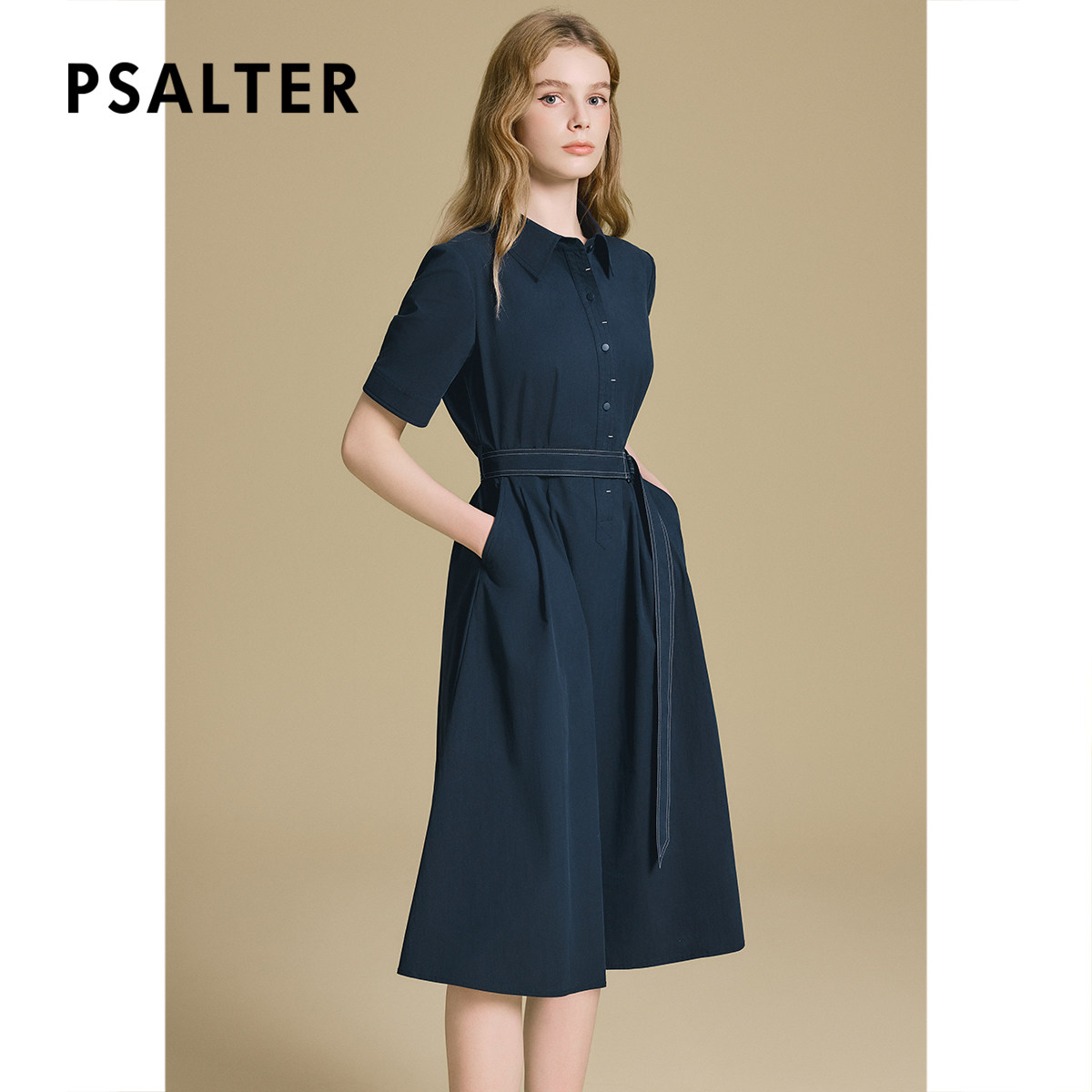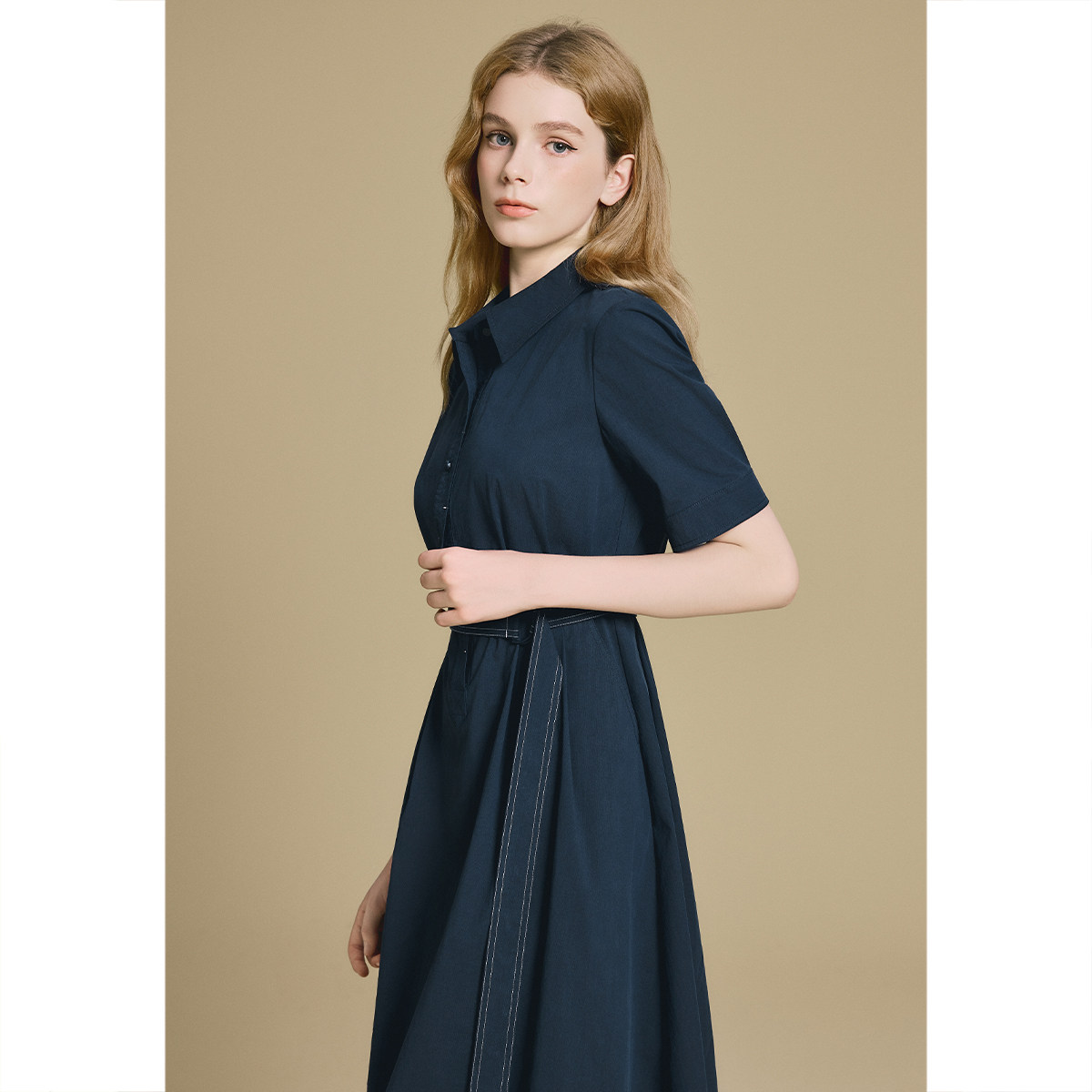 诗篇专选气质通勤衬衫领本布收腰腰带显瘦连衣裙2025秋款