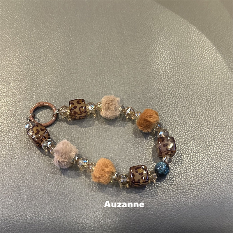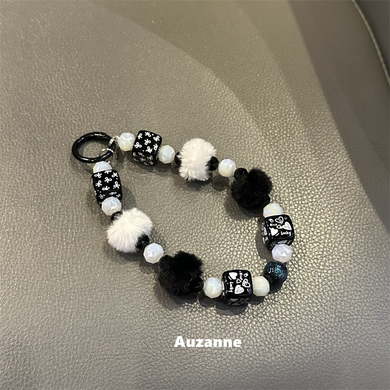 秋冬格纹蝴蝶结串珠挂炼适用于车钥匙书包耳机壳挂饰品