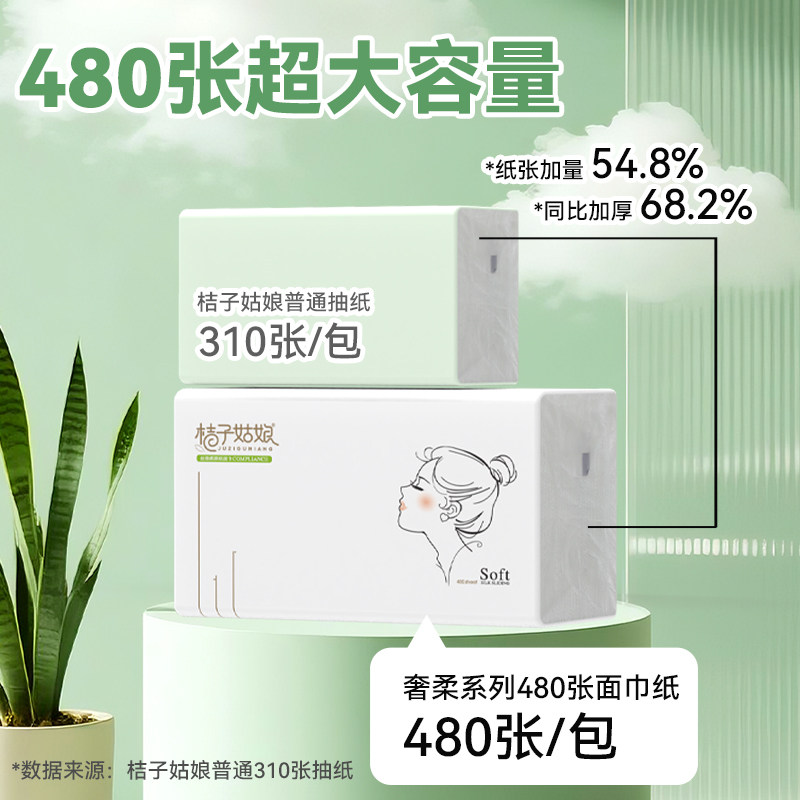 桔子姑娘抽纸480张加大加厚软包纸面巾家用餐巾整箱批发家庭装