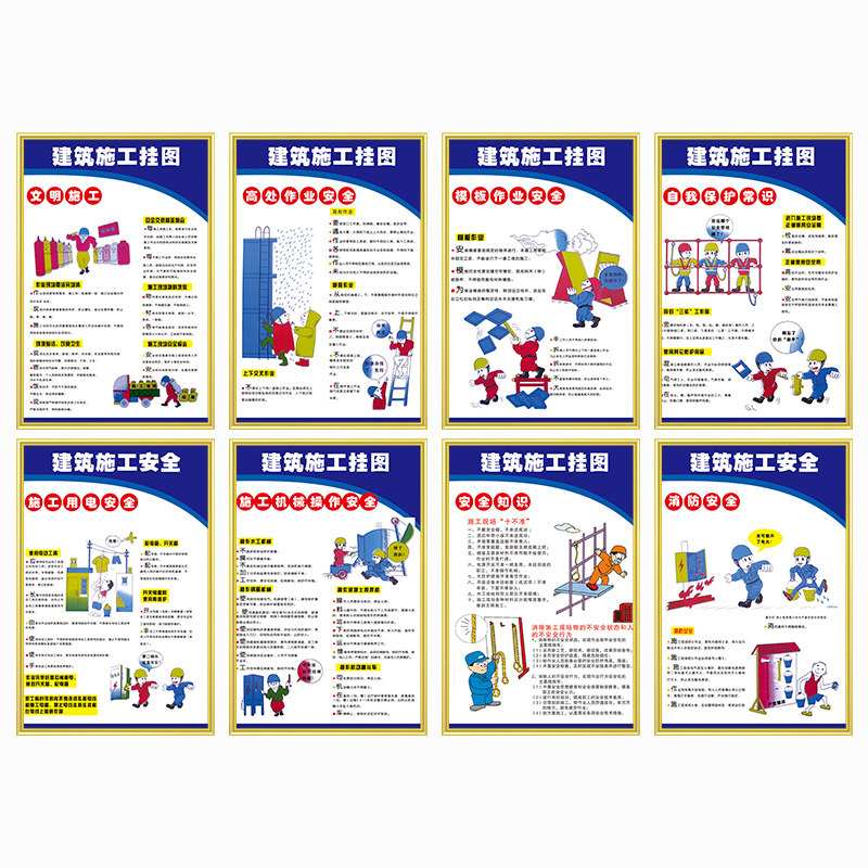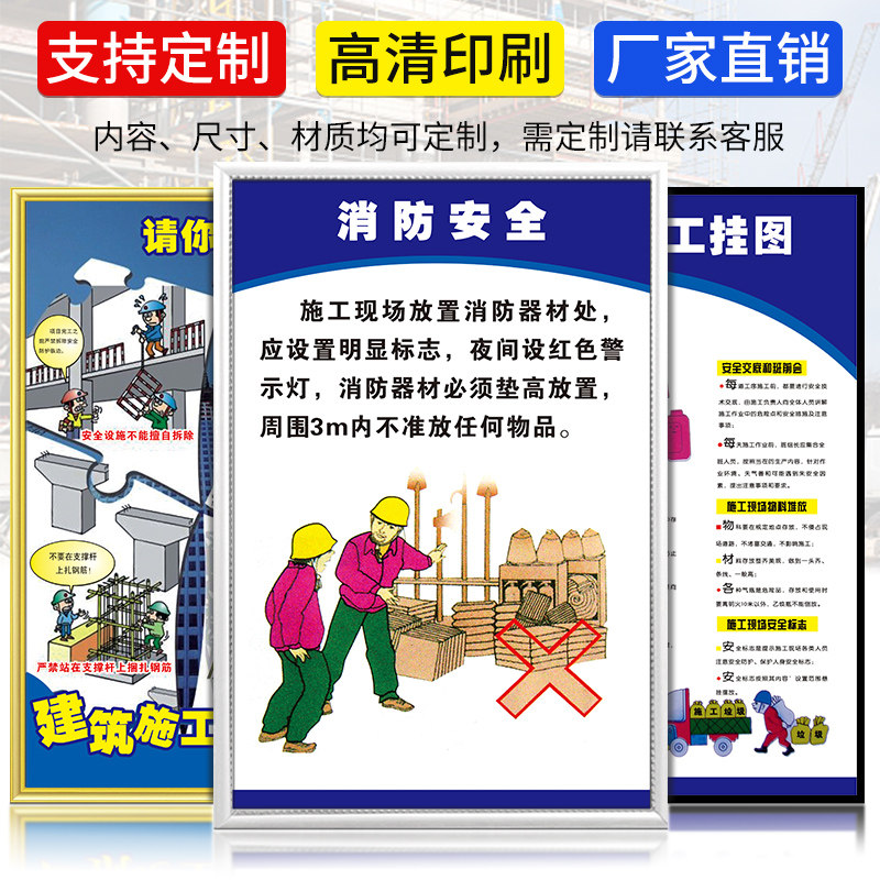 安全施工警示标语挂图进入工地注意施工安全防范标识挂图宣传图广告宣传牌KT板制度牌宣传牌标识牌提示牌定制