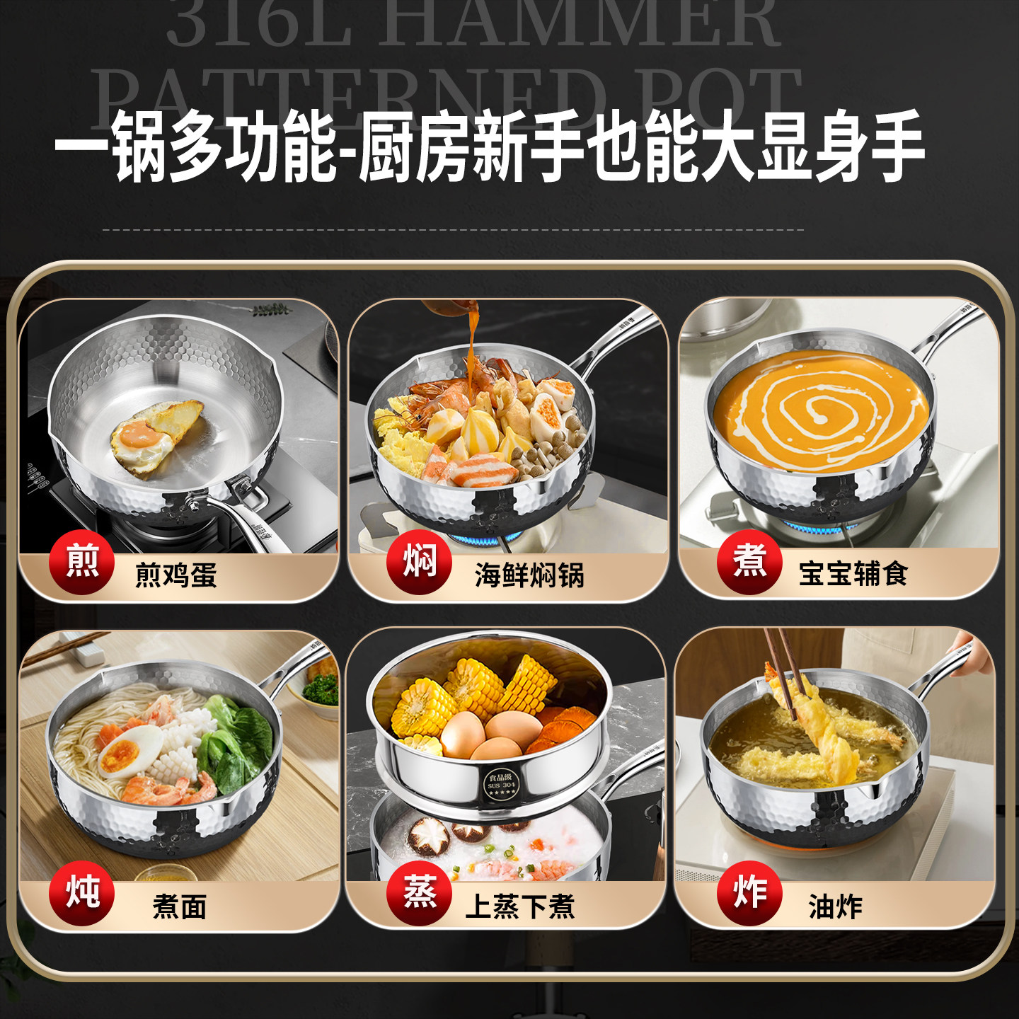 铿锵316L不锈钢雪平锅家用无涂层不粘锅宝宝辅食专用小奶锅汤锅