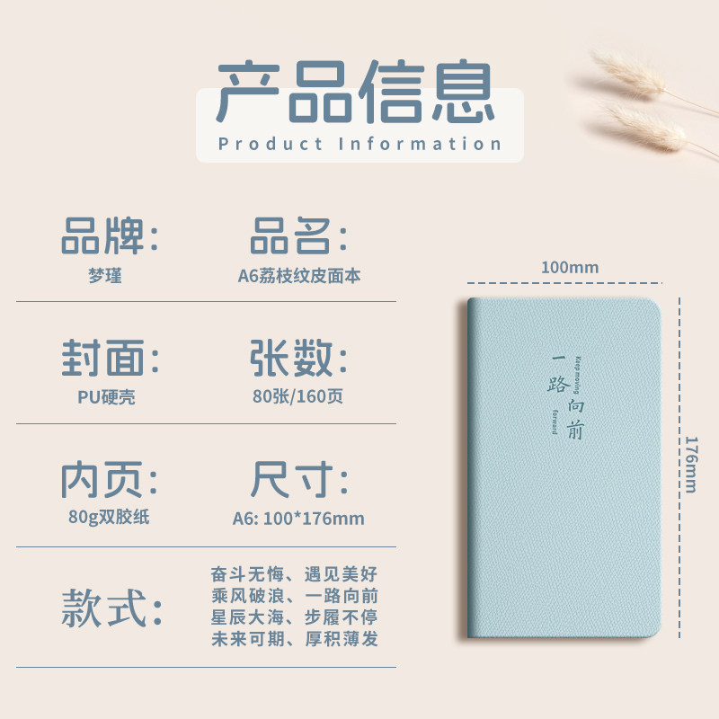 梦瑾加厚笔记本本子高颜值励志文字新款a6皮面本初高中生专用横线课堂记事本考研用记录本办公会议商务登记本