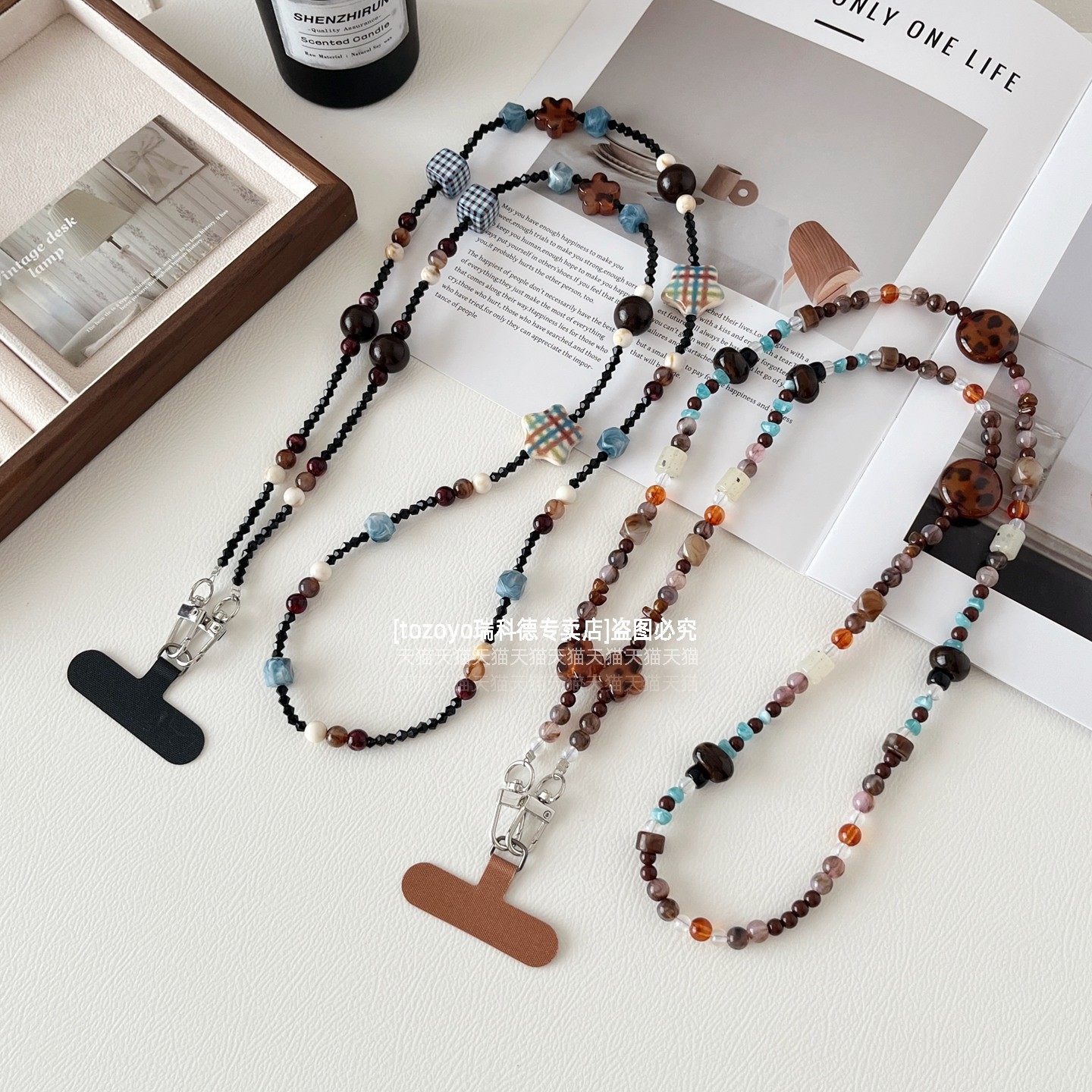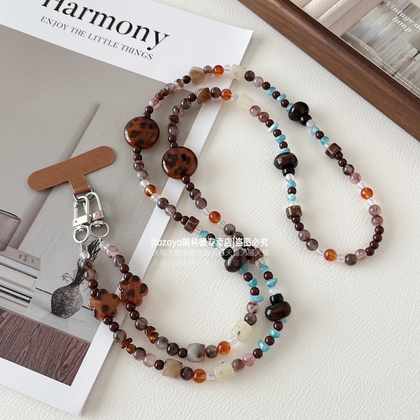 高级感复古小众豹纹串珠钥匙扣背带手机链