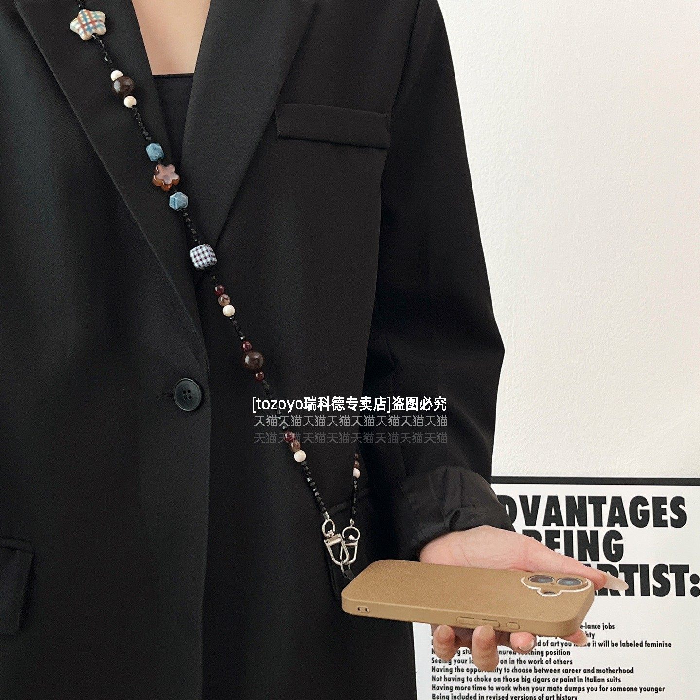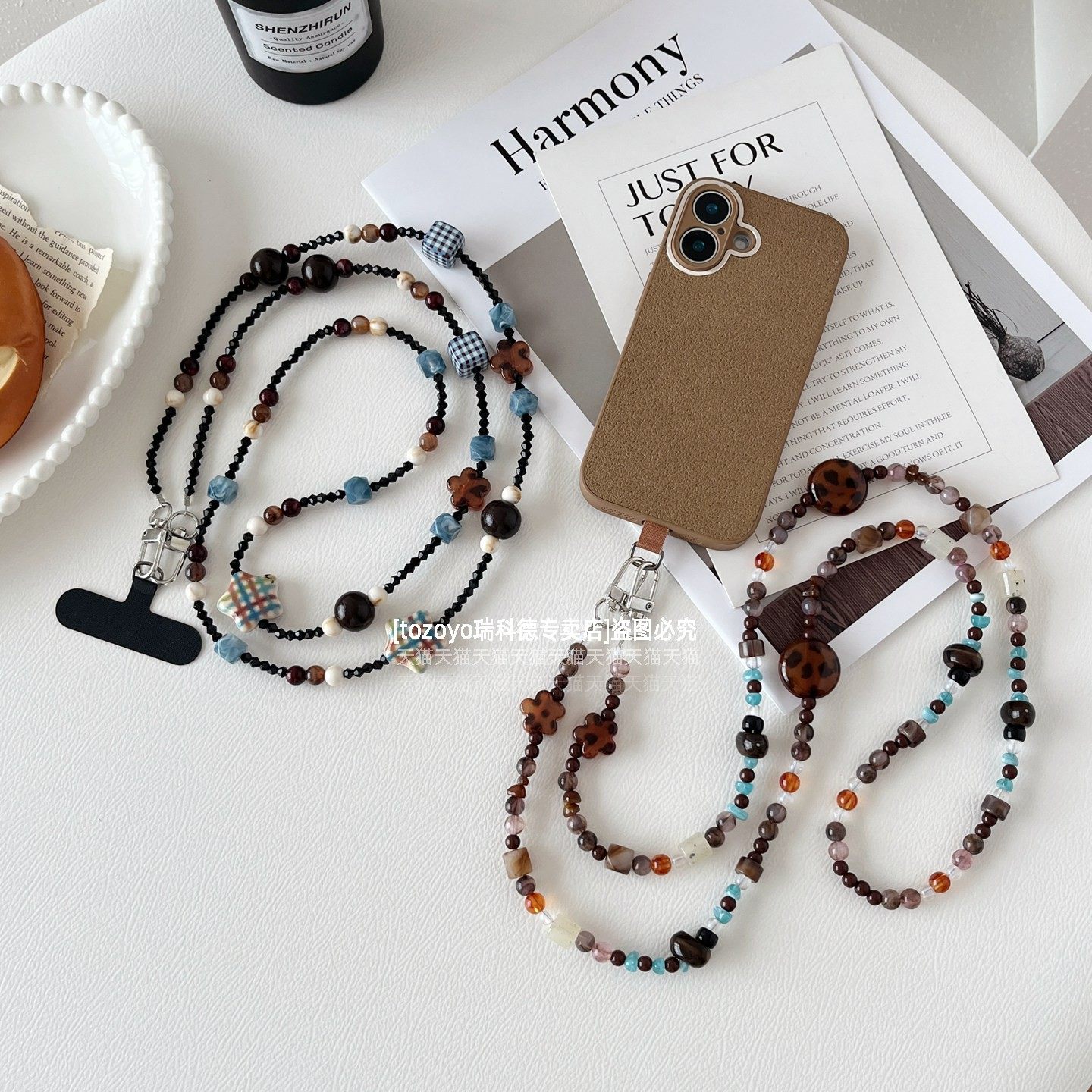 超高级手机链豹纹格纹星星韩系ins背带挂链时髦网红高端链条斜挎可背高颜值旅游防丢挂件女包包串珠蓝棕咖壳