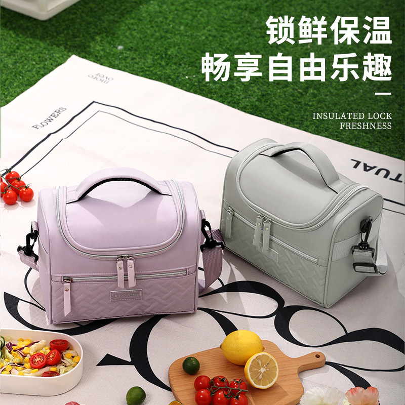 新款可颂弯盖单肩冰包上班带饭便当包出差加厚保温包学生饭盒袋