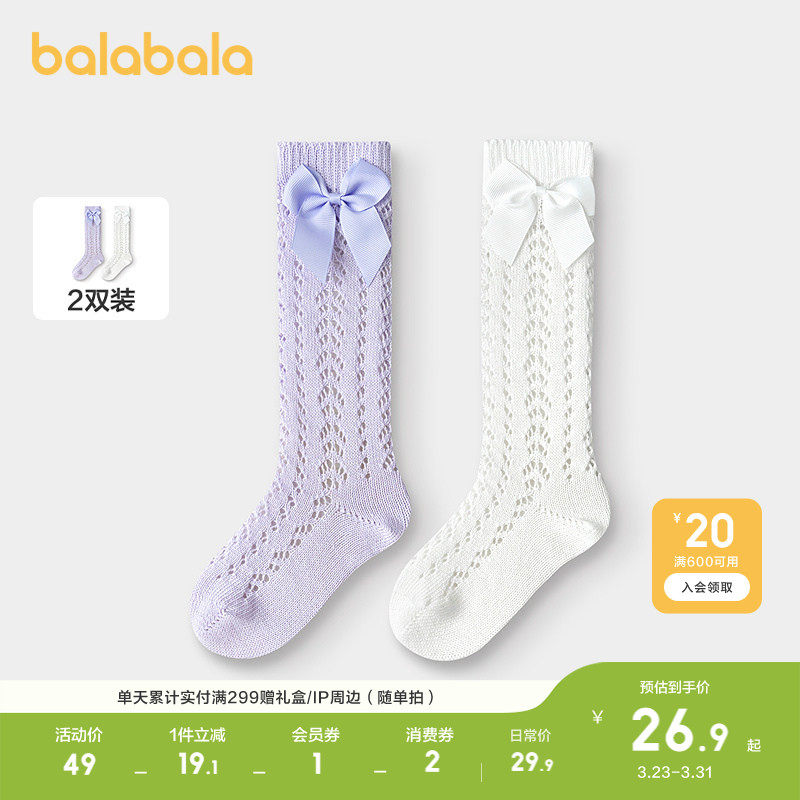 巴拉巴拉女童袜子儿童网眼袜夏薄款中筒袜甜美两双装