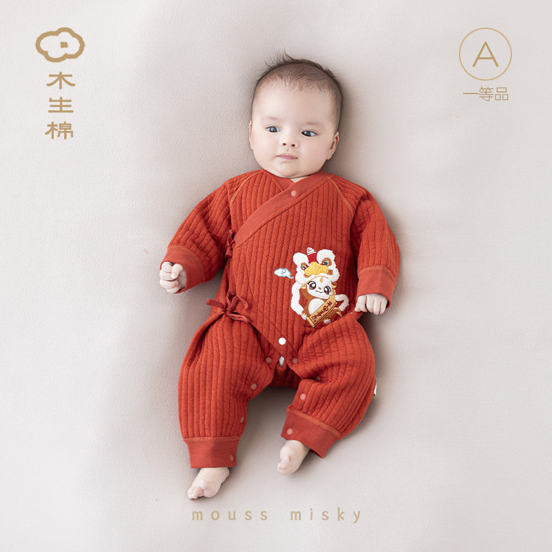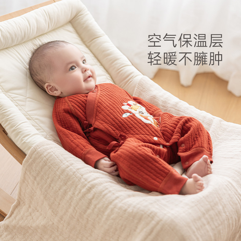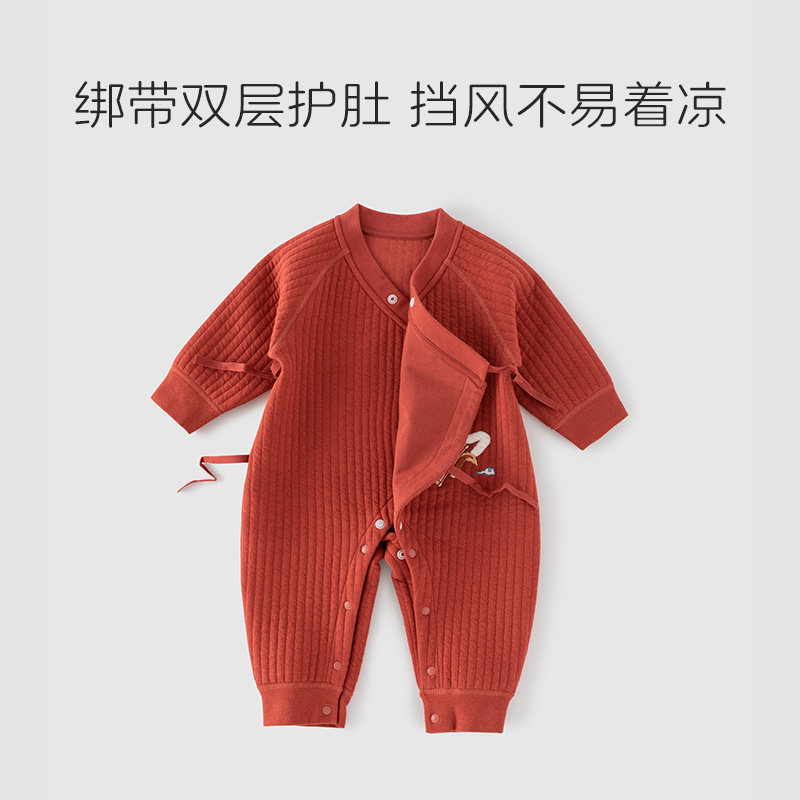婧麒新生儿婴儿衣服秋冬夹棉满月纯棉初生宝宝秋装连体衣a类爬服