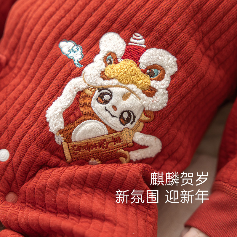新生儿夹丝保暖连体衣秋冬季宝宝满月衣服婴幼儿红色新年拜年服