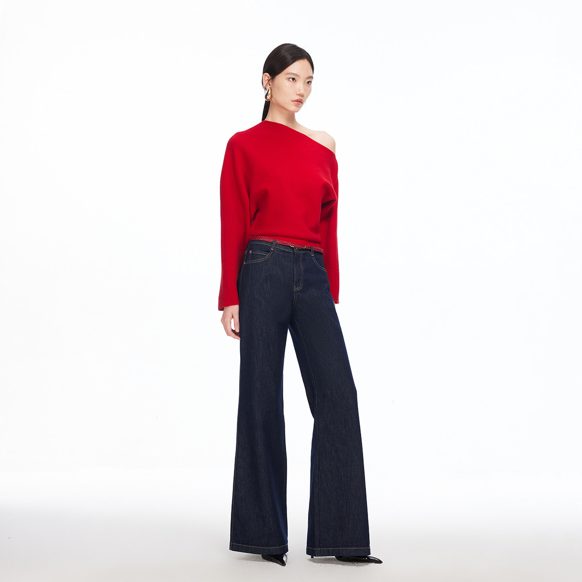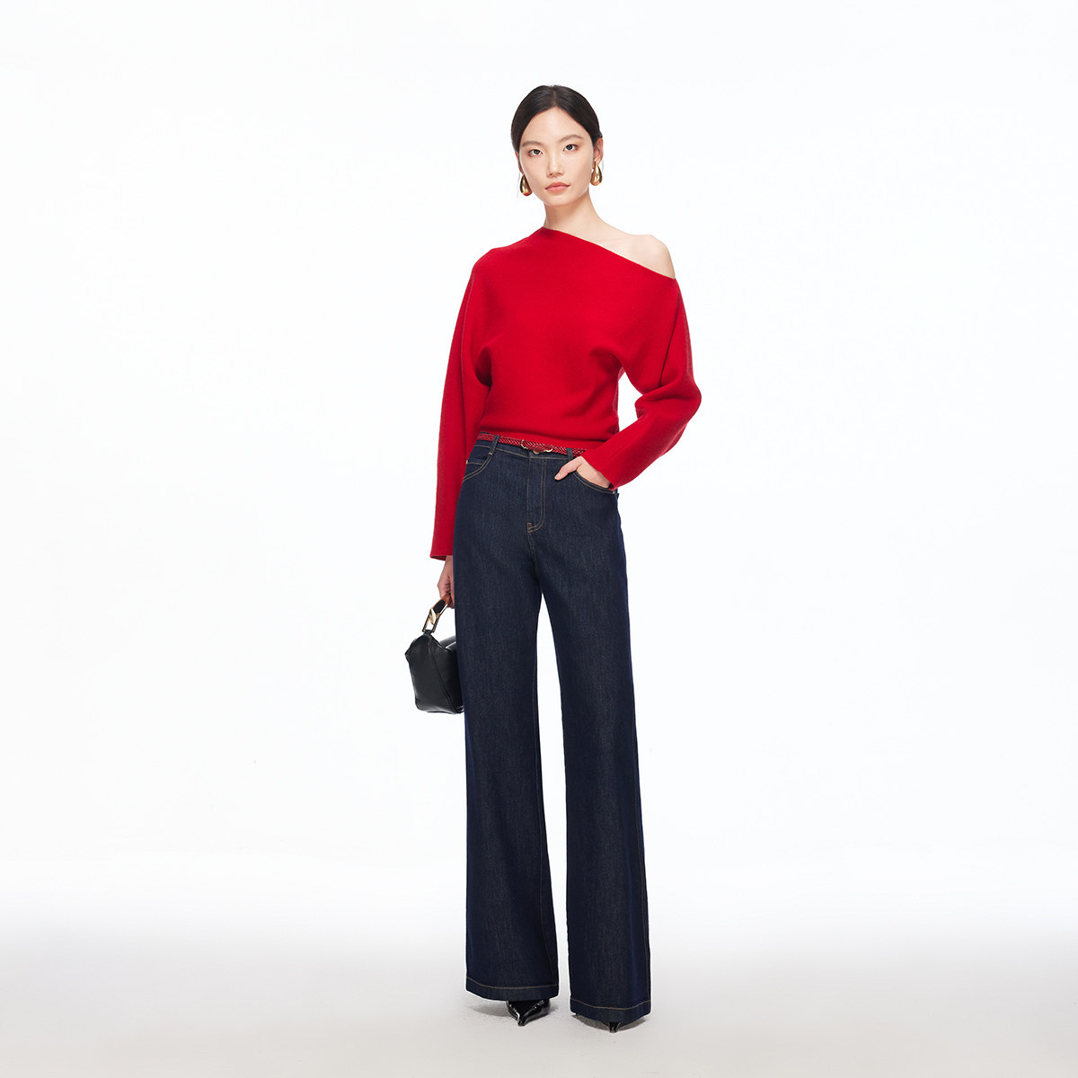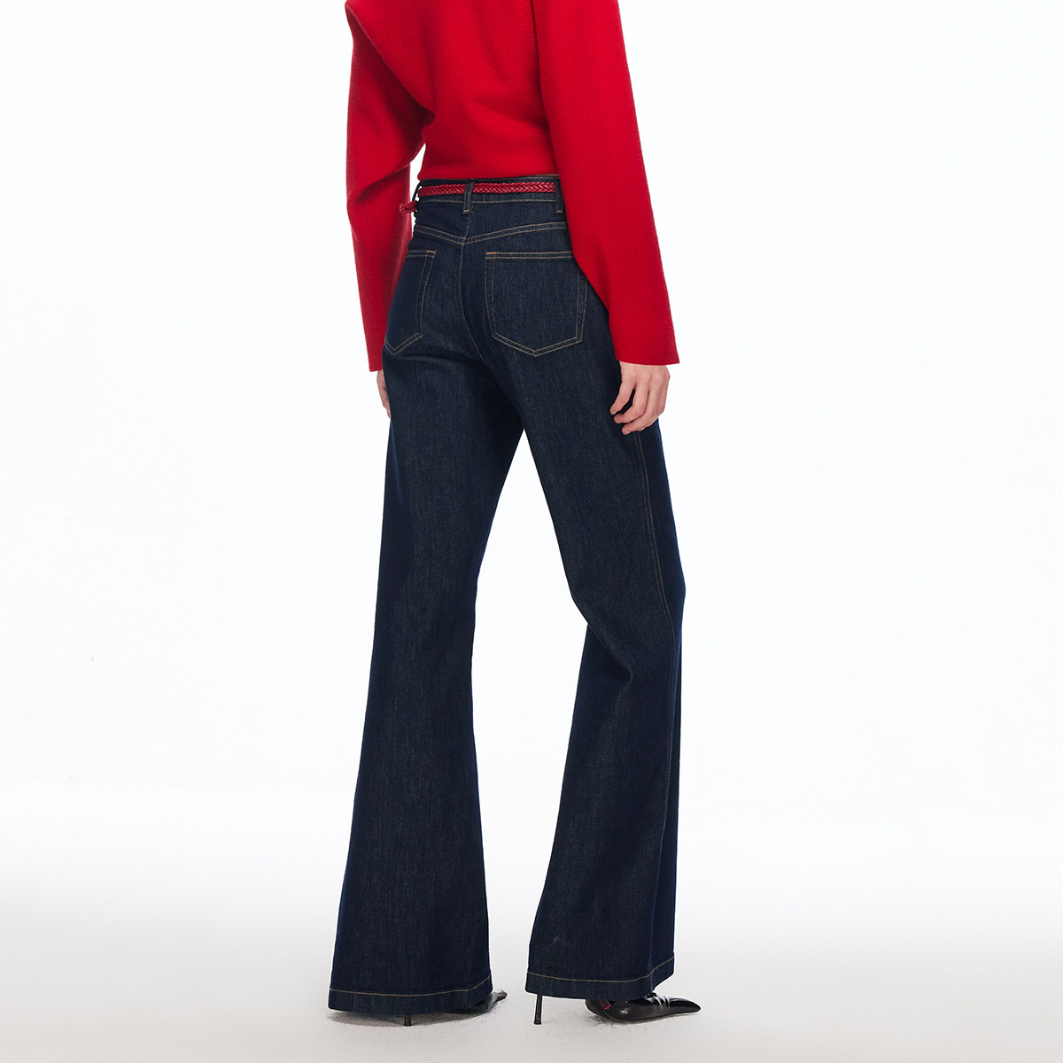 twosweet【超级裤神】四面弹重塑大长腿高腰直筒微喇叭原色牛仔裤