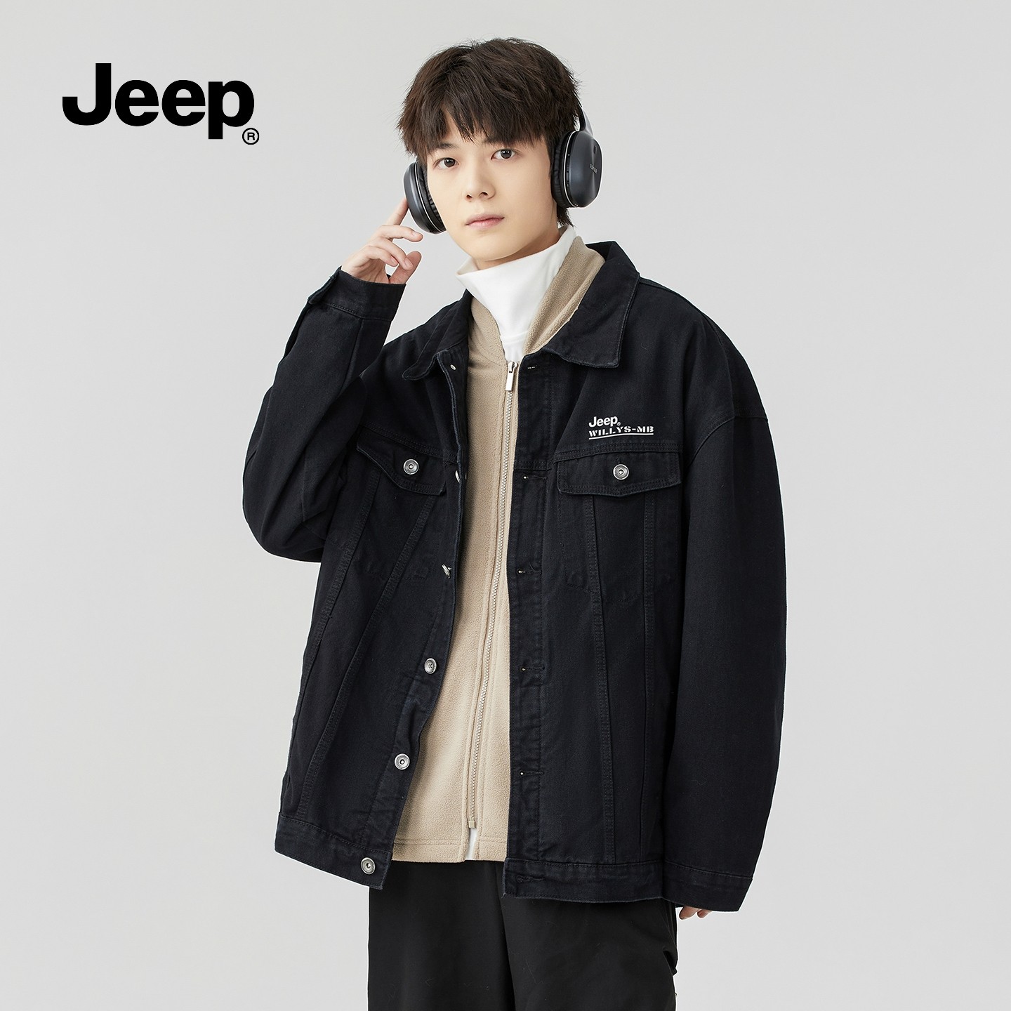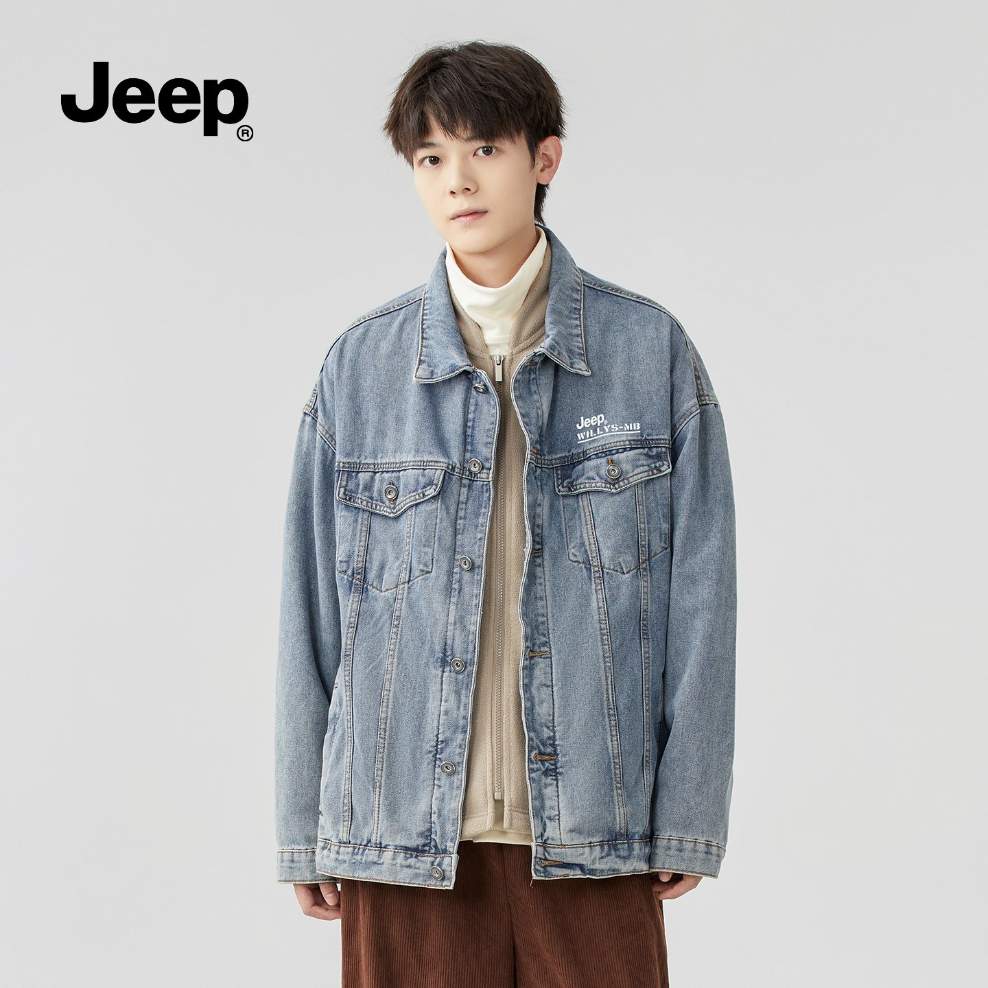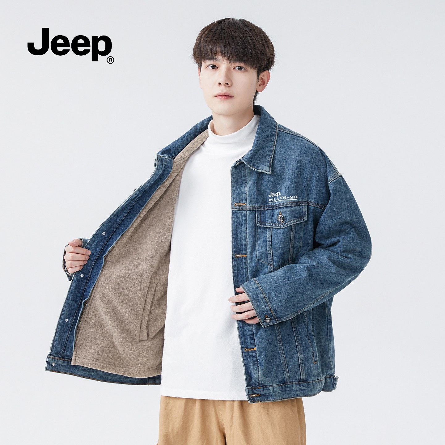 Jeep吉普复古美式水洗牛仔外套男秋冬2025保暖加绒休闲两件套夹克