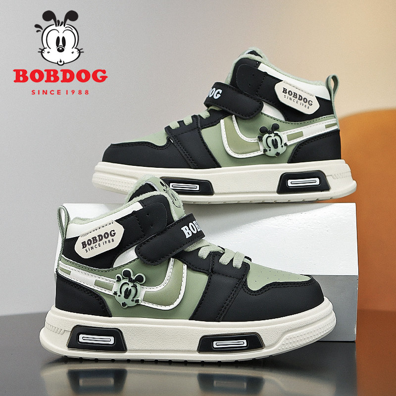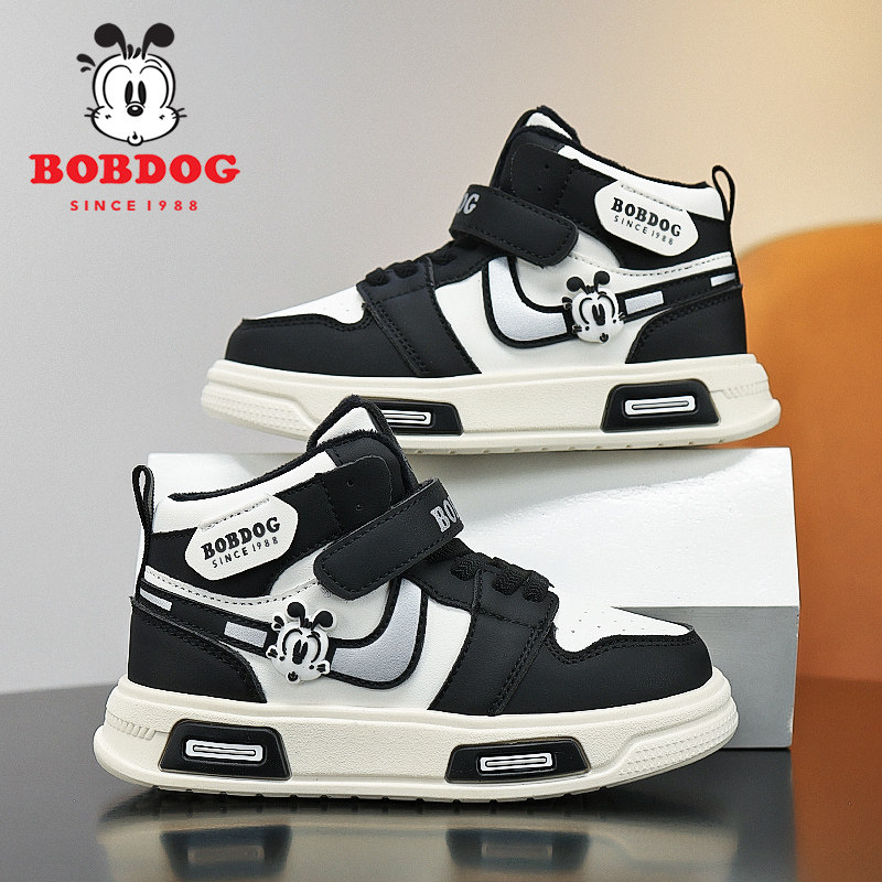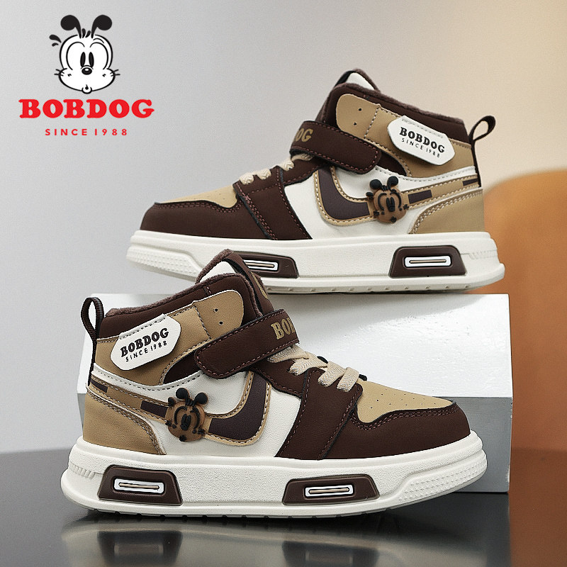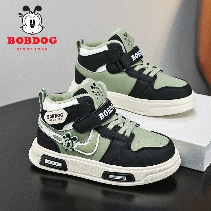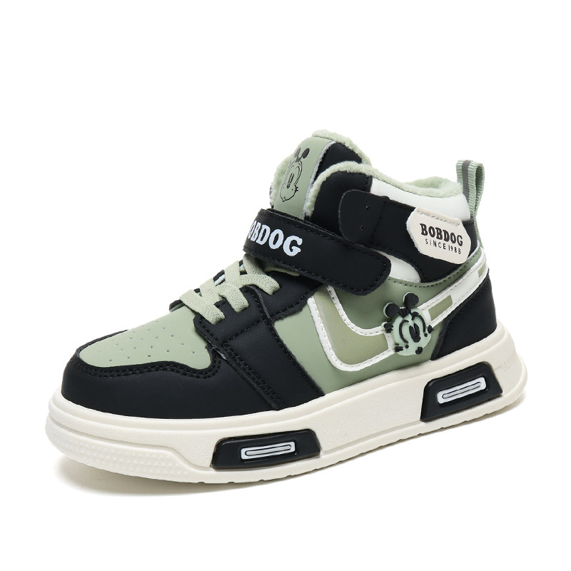 巴布豆男童板鞋2025秋冬季新款加绒保暖二棉鞋高帮男孩儿童运动鞋