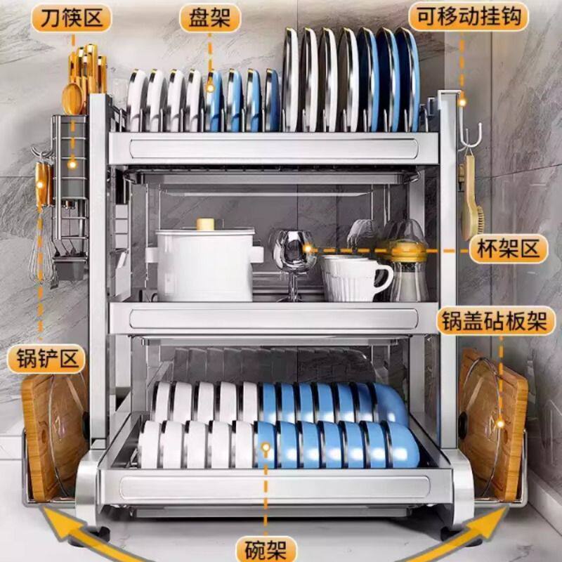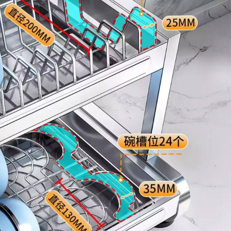 304不锈钢厨房置物架碗碟碗盘沥水架多功能放碗架碗筷收纳盒碗柜