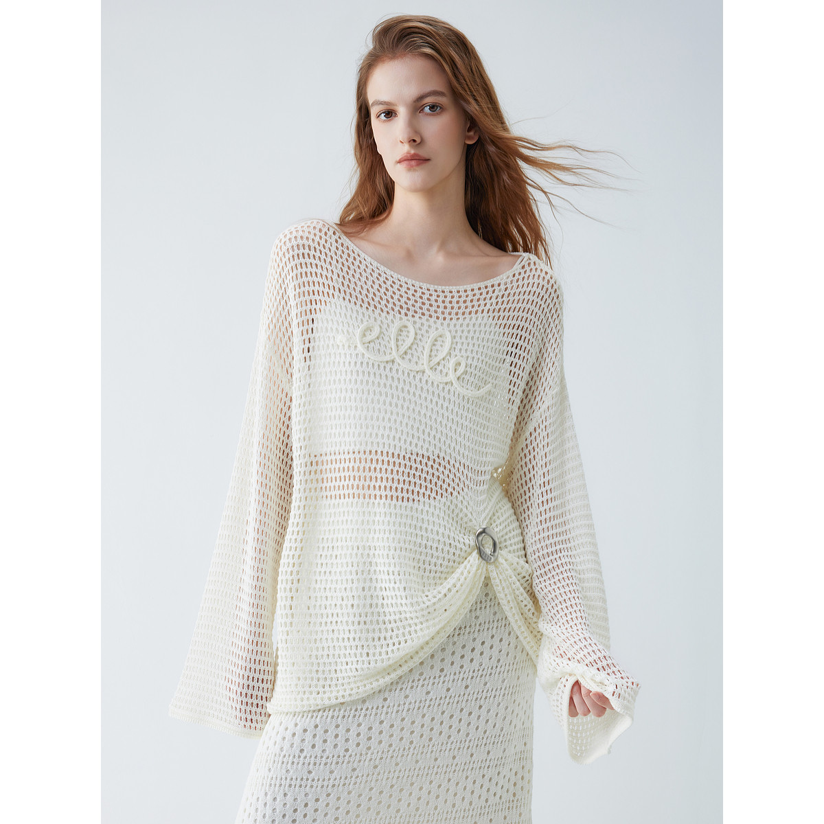 【明星同款】ELLE法式慵懒感镂空针织衫女2025秋季新款罩衫上衣