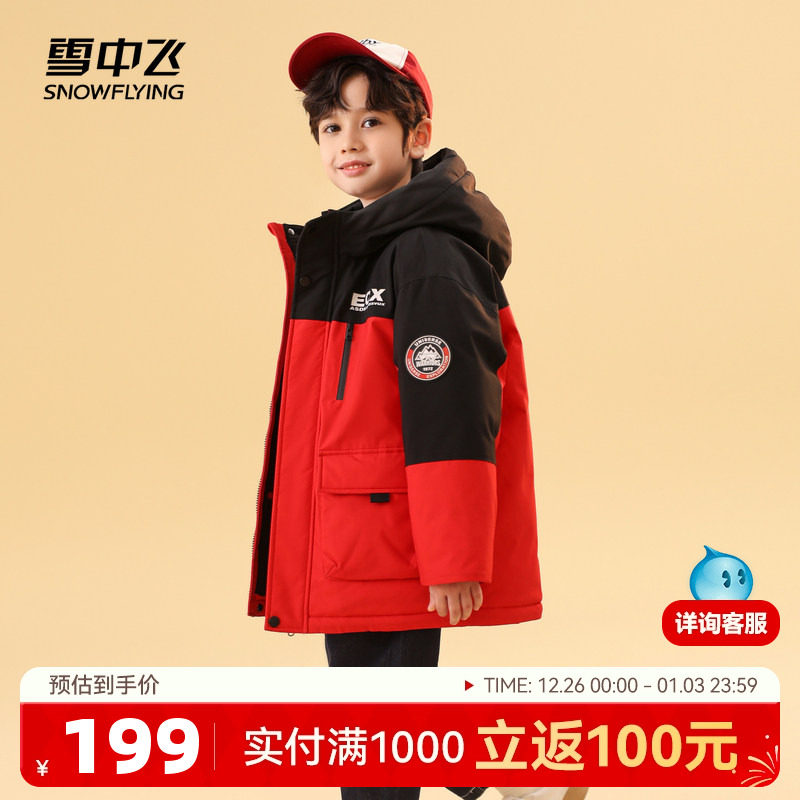 雪中飞2025秋冬新款男女中大童拼接撞色时尚连帽保暖童装羽绒服