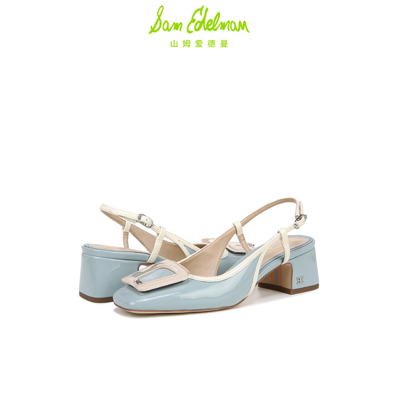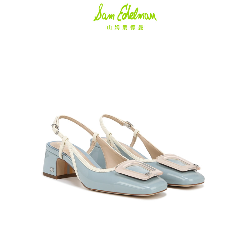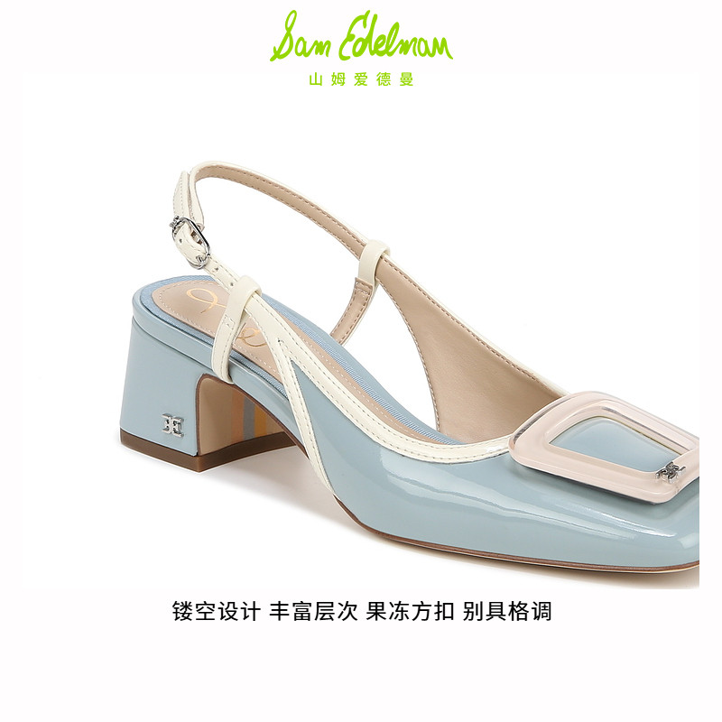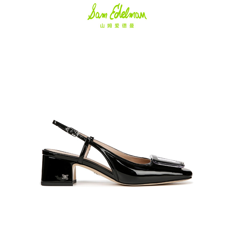 SAM EDELMAN山姆爱德曼夏款方扣一字带漆皮粗高跟凉鞋女TRACIE