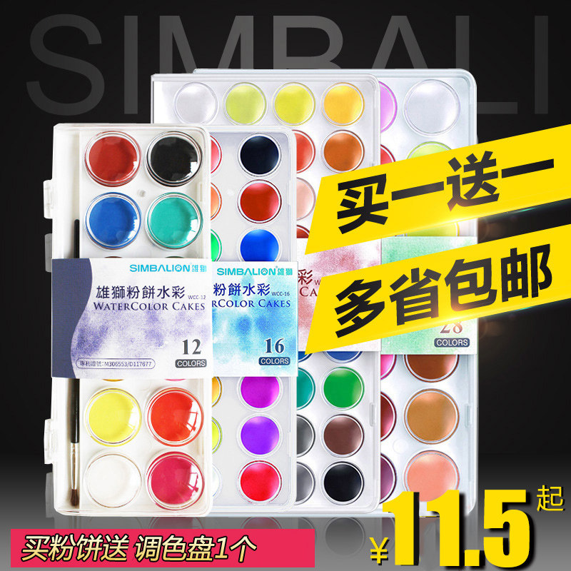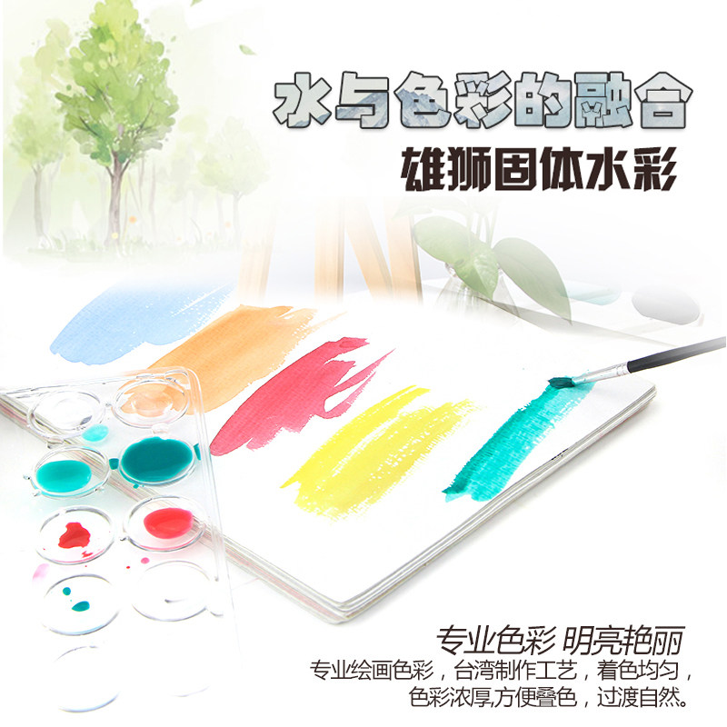 雄狮水彩粉饼美术专业写生工具透明固体水彩颜料初学者儿童画画水粉套装颜料脸部便携式水彩分装盒