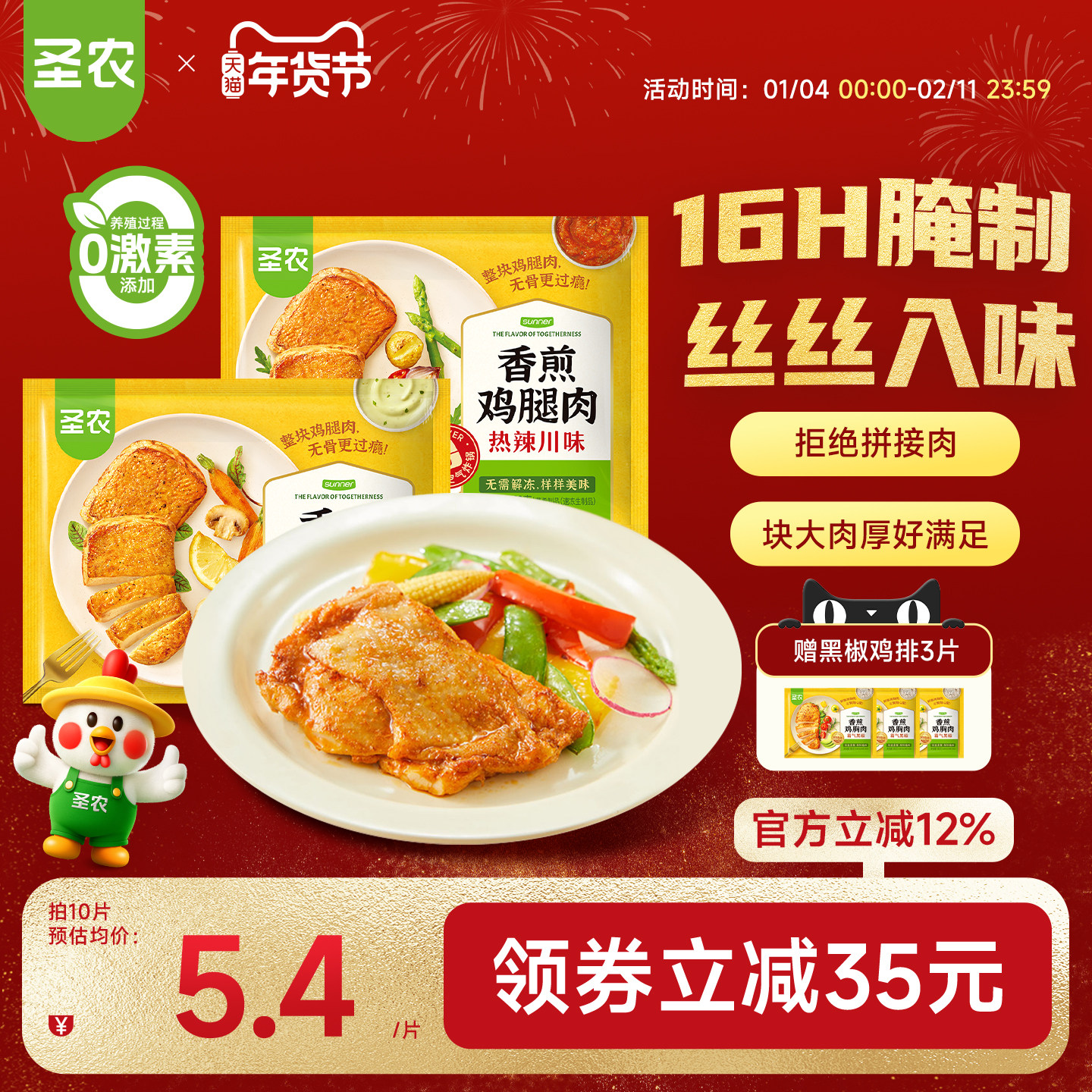 【活动专享】圣农香煎鸡胸肉大鸡排黑椒鲜香味冷冻100g*10片装