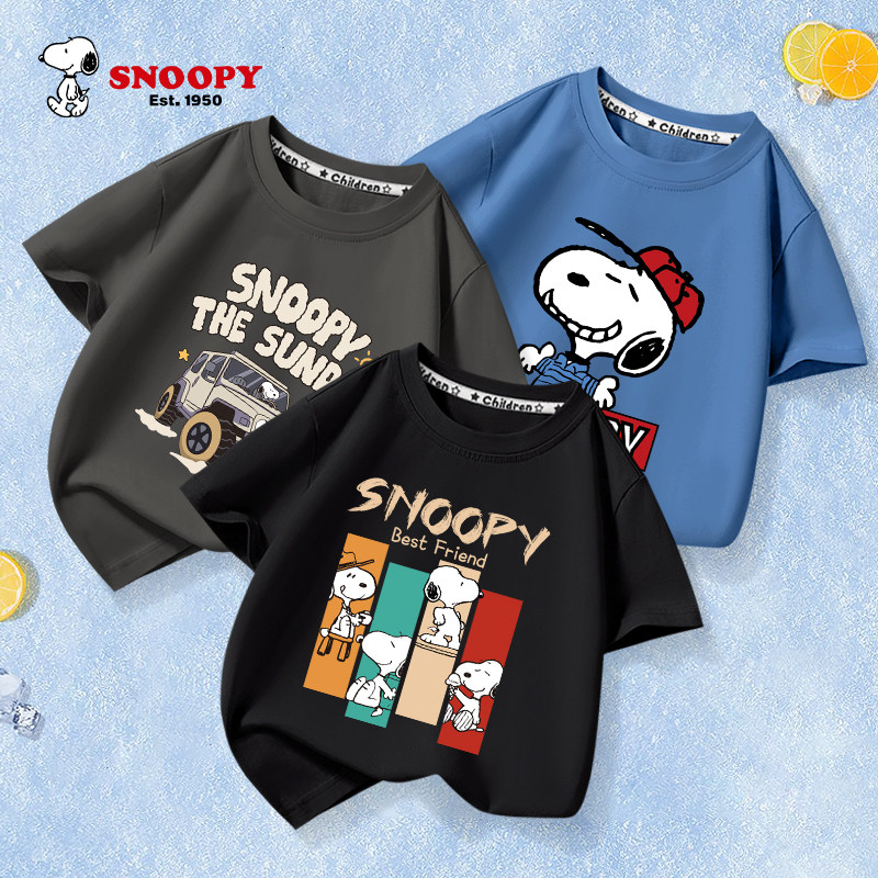 史努比男童短袖T恤圆领半袖儿童上衣夏季2025新款大童纯棉打底衫