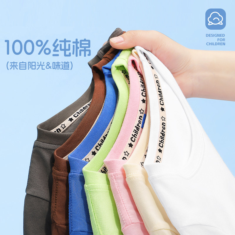 真维斯童装女童短袖t恤2025新款男童夏季纯棉半袖儿童纯色上衣女
