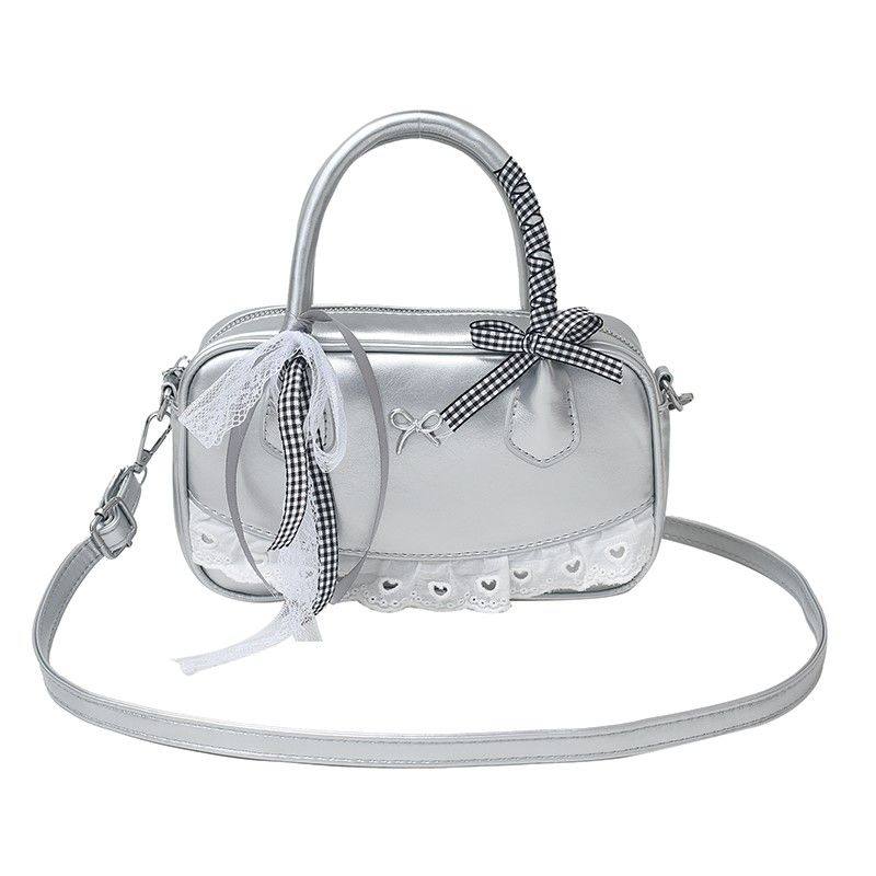 时尚百搭少女包包女年新款可爱蝴蝶结单肩斜挎手拎小方包手提