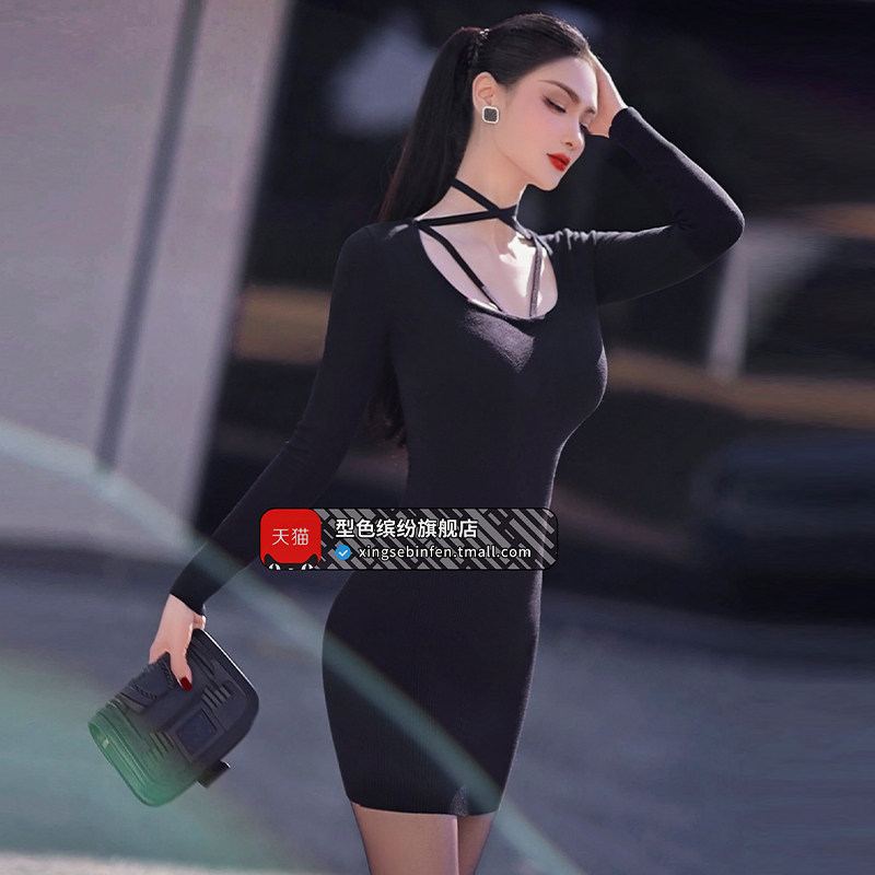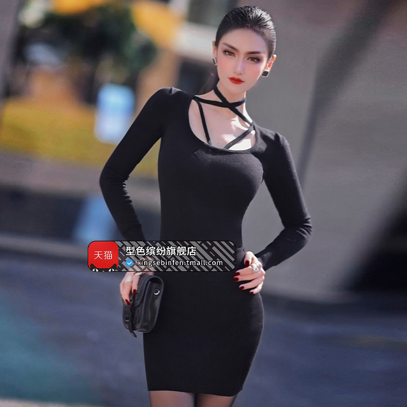型色缤纷秋冬季女装内搭打底连衣裙新款气质修身长袖针织衫女