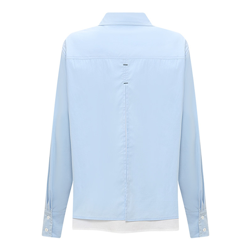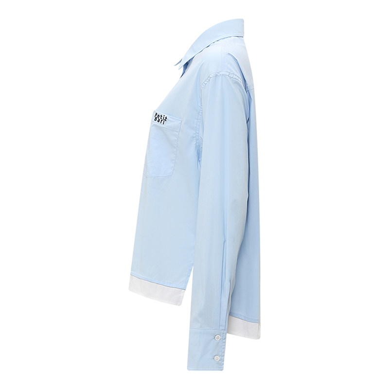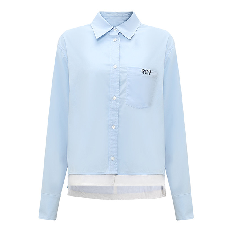 Petit Bari春夏刺绣拼接假两件长袖衬衫女 棉质亲肤透气显瘦上衣