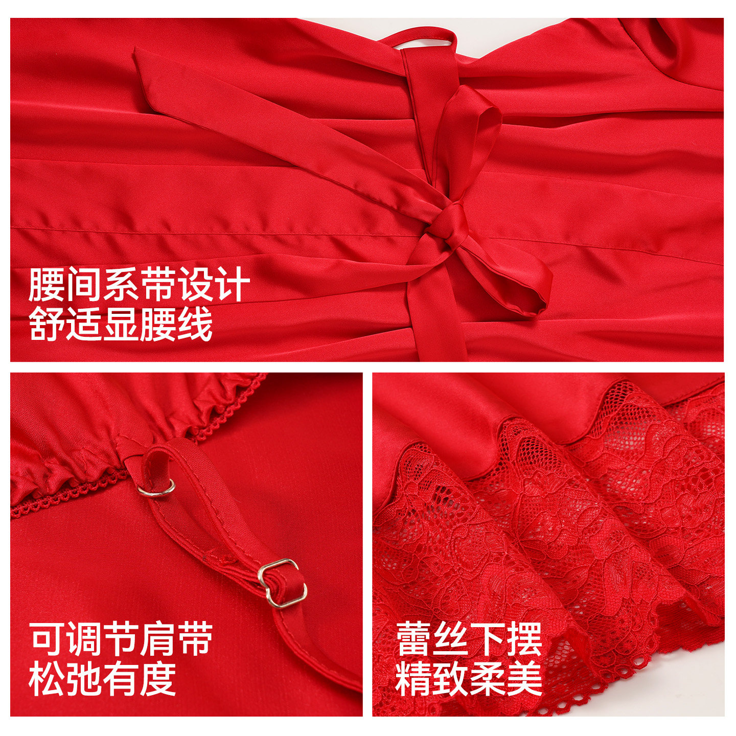 睡衣女士2025年新款夏季薄款冰丝吊带睡裙火辣性感蕾丝睡袍三件套