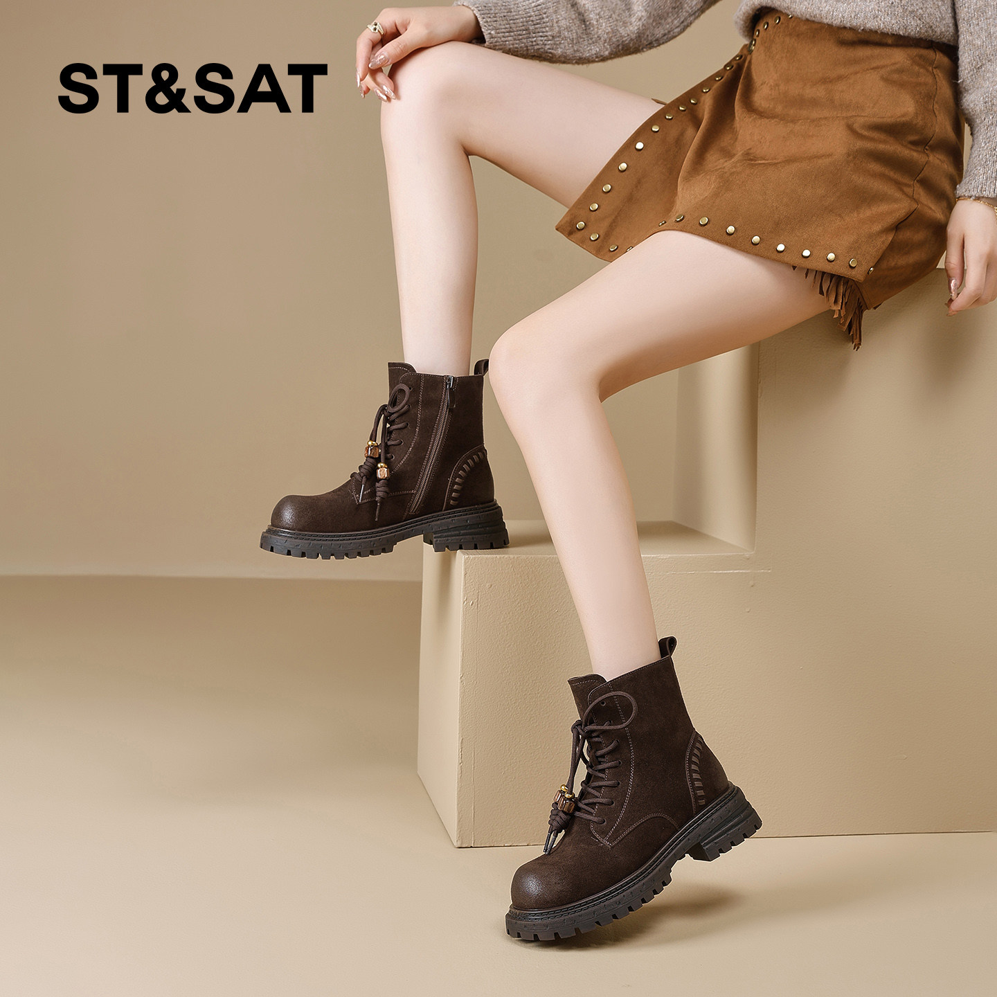 星期六马丁靴女2025冬季新款女靴女款爆款冬款加绒真皮英伦风靴子