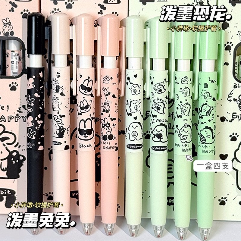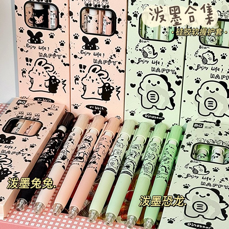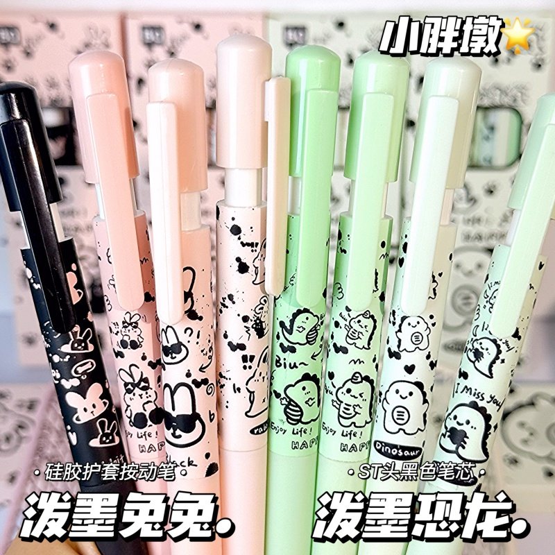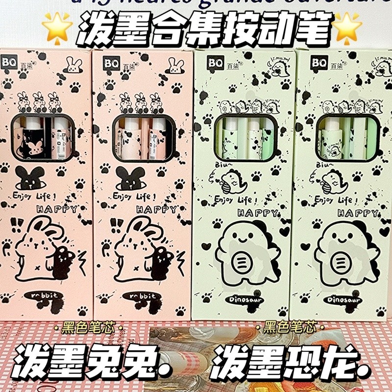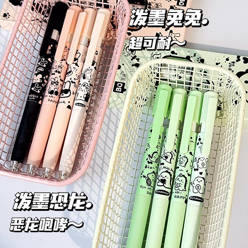 ins高颜值泼墨恐龙兔兔按动中性笔可爱学生考试专用0.5速干刷题笔