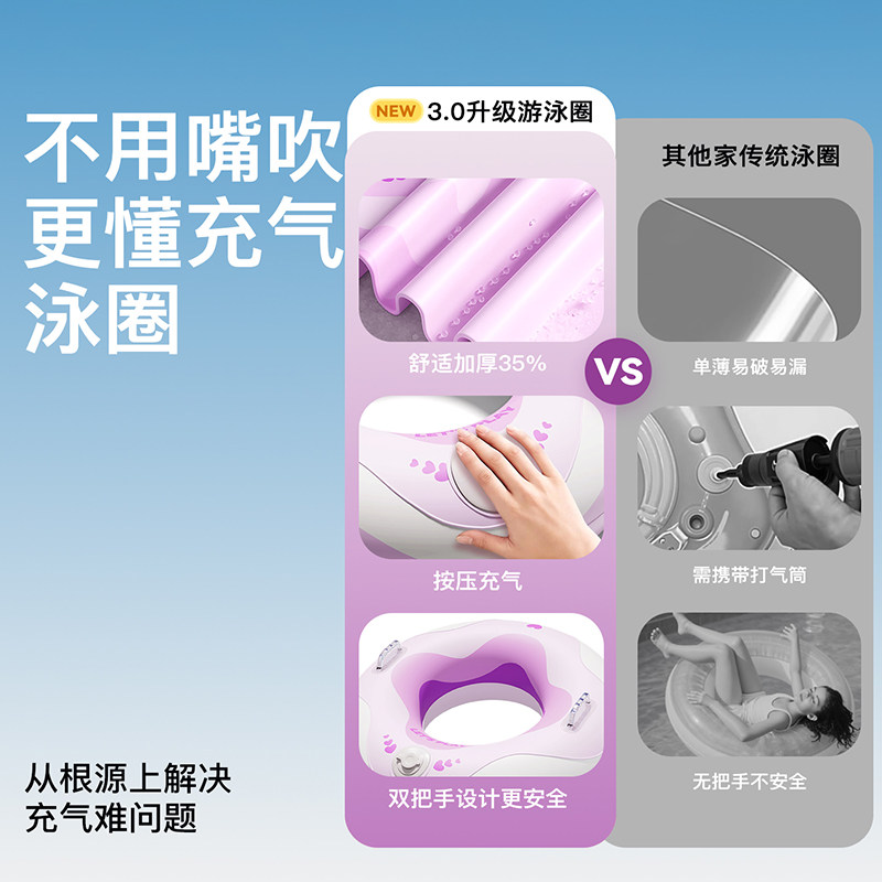 儿童充气成人游泳圈大人加厚泳圈带把手浮力圈腋下圈防侧翻专业
