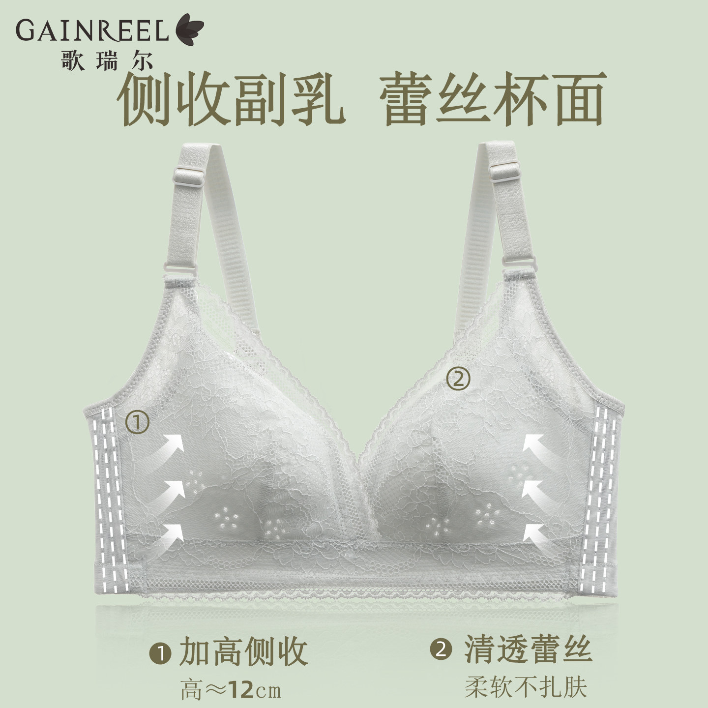 【透气呼吸杯】歌瑞尔大胸显小薄款大码内衣女侧收副乳防下垂文胸