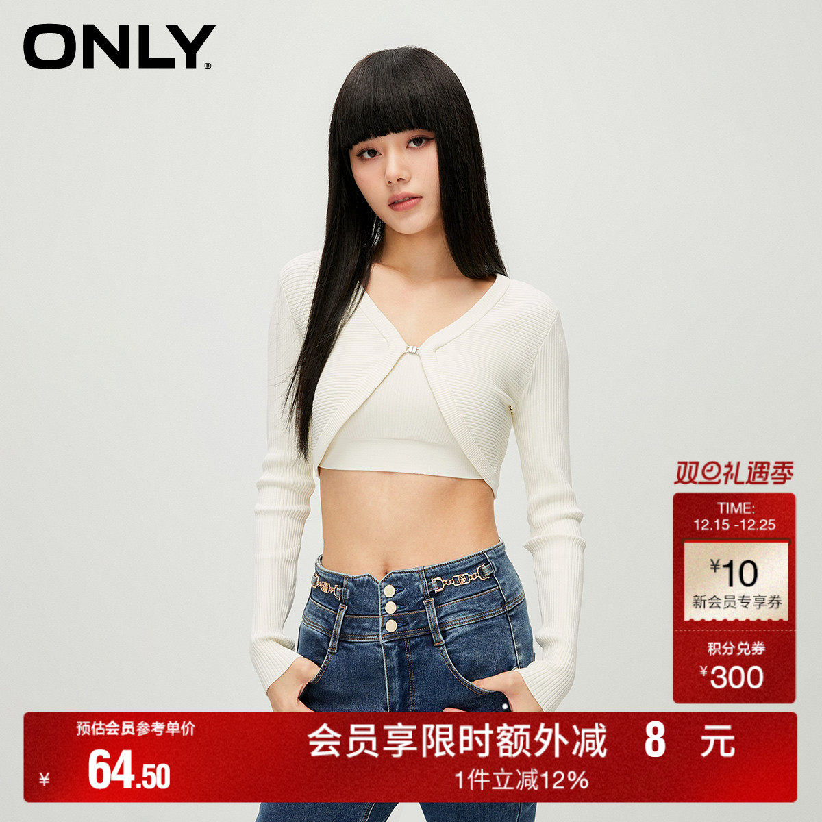 【ONLY奥莱】秋冬气质百搭不规则开衫V领短款针织衫女