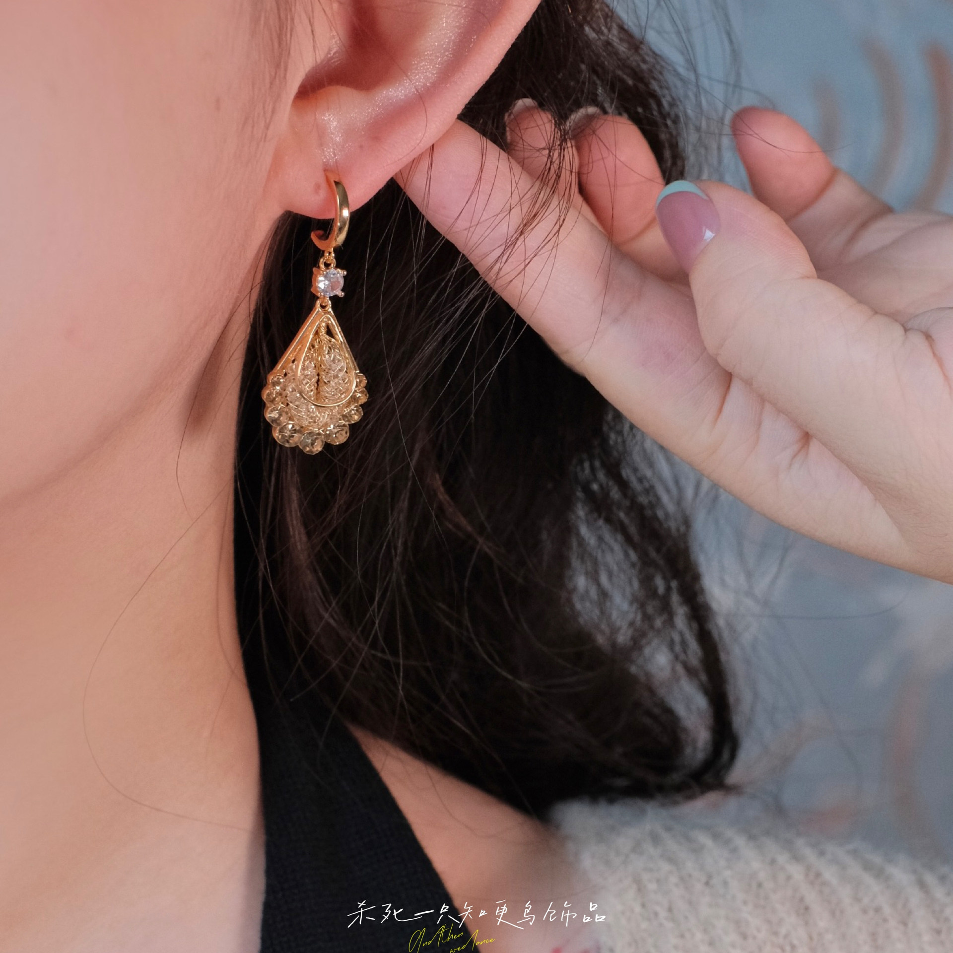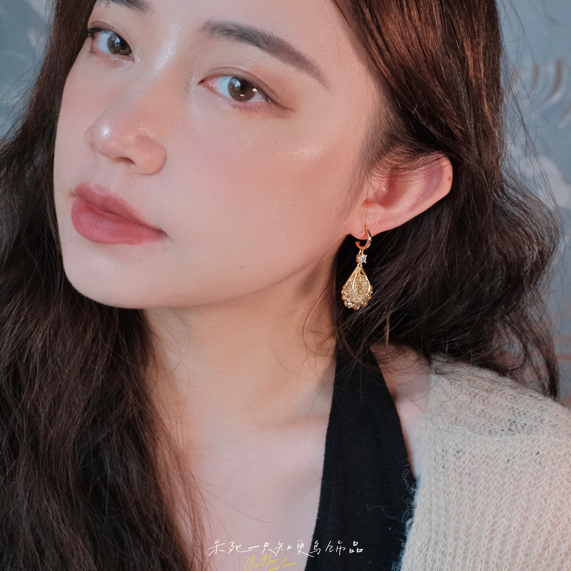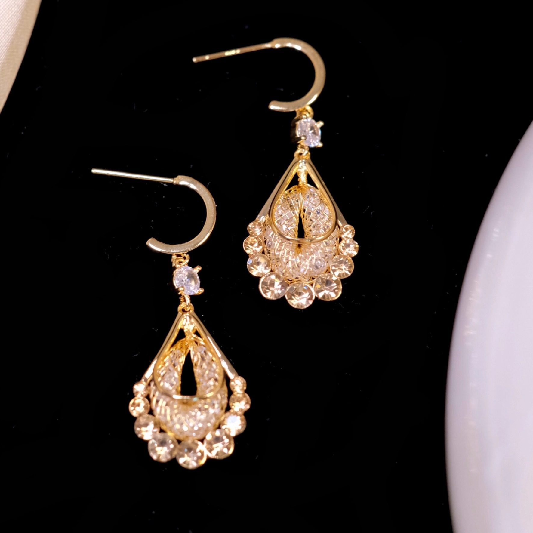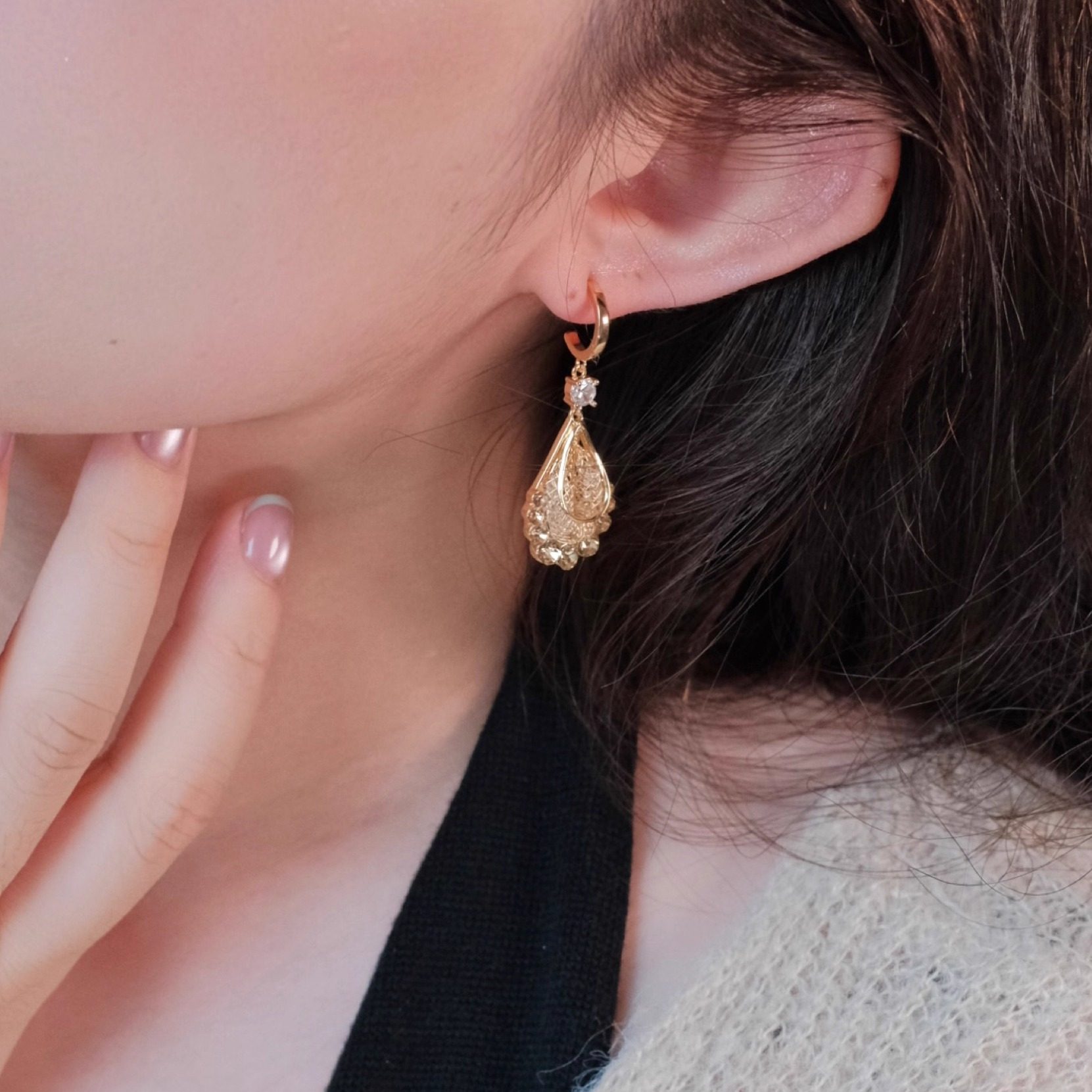 《鎏金岁月》复古法式优雅港风金色编织水滴镶钻耳钉耳环耳饰耳夹