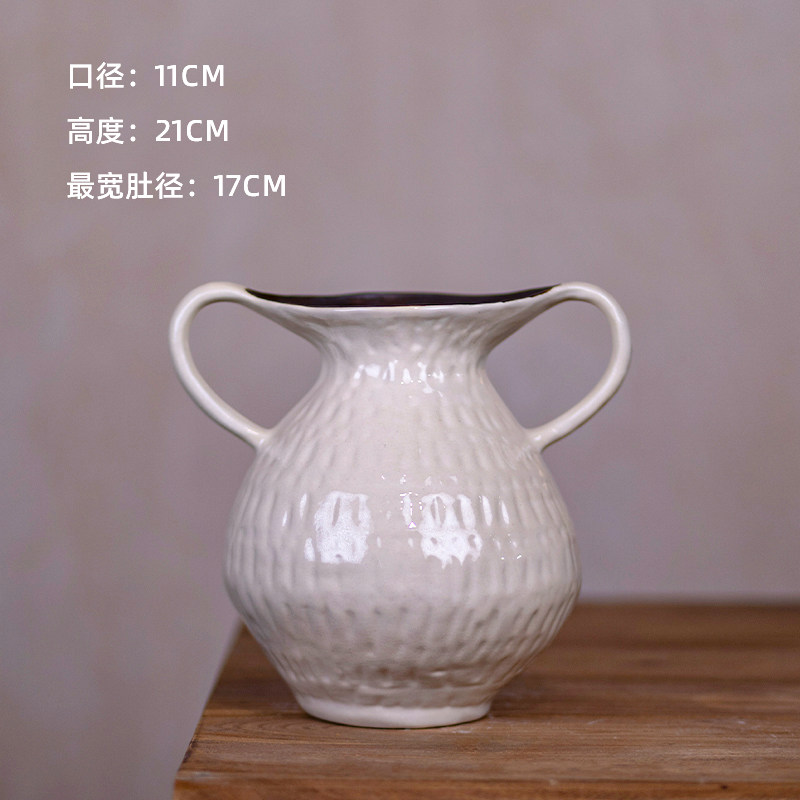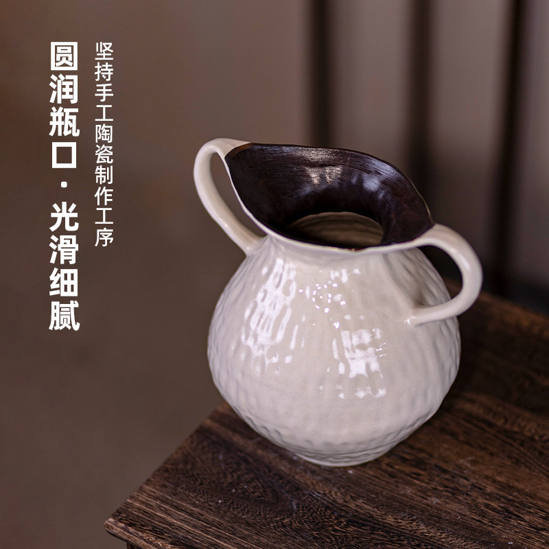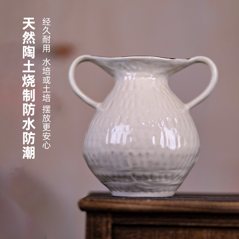 景德镇油画风陶罐复古高级感花瓶插花器中式美学艺术摆件双耳客厅