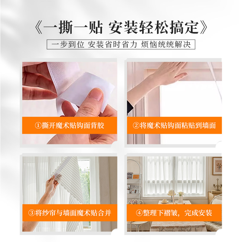 魔术贴窗纱免打孔安装防晒隔热防蚊虫飘窗遮光粘贴式窗帘百叶白色
