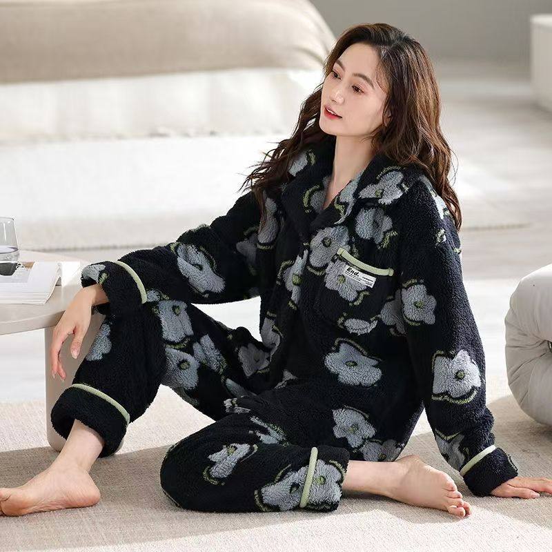 睡衣女冬季加厚保暖珊瑚绒套装2025年新款卡通秋冬款法兰绒家居服