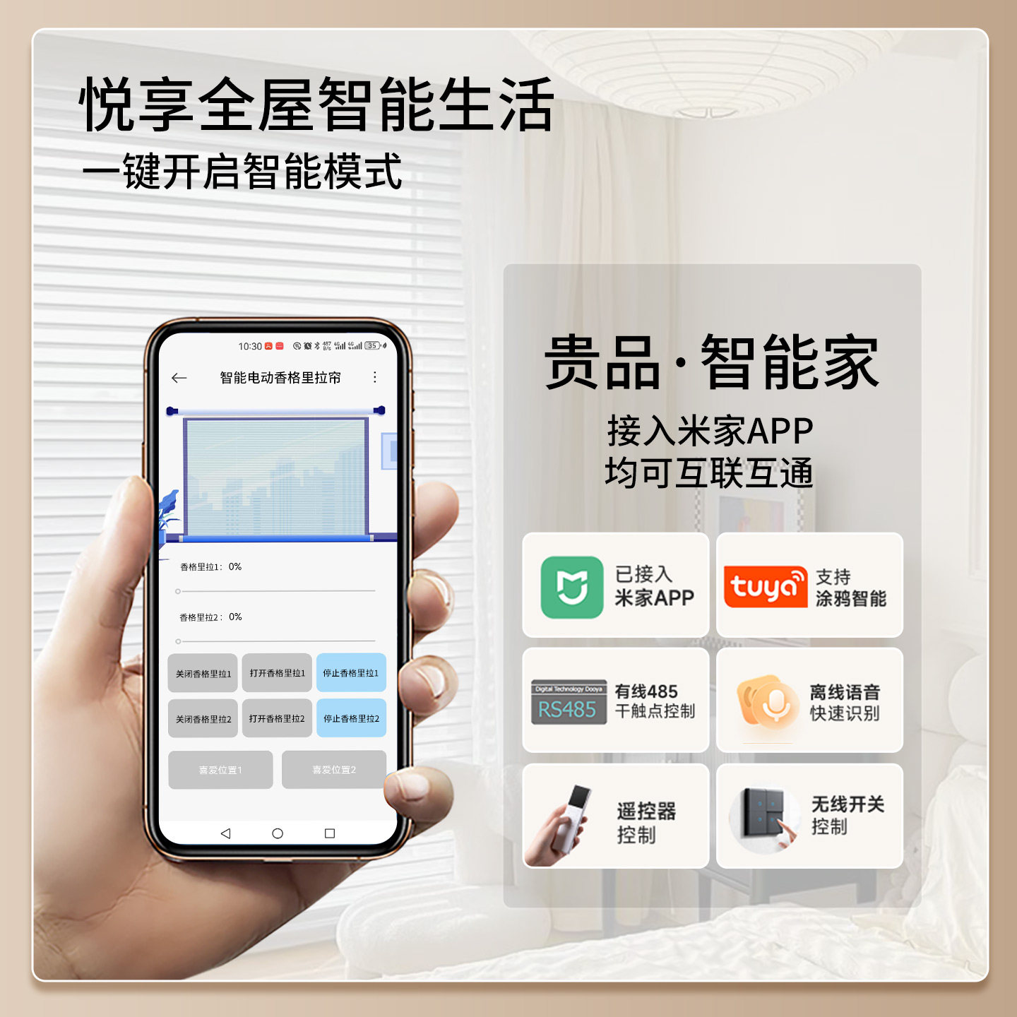 贵品智能语音香格里拉帘客厅办公阳台升降调光电动遮阳百叶窗帘