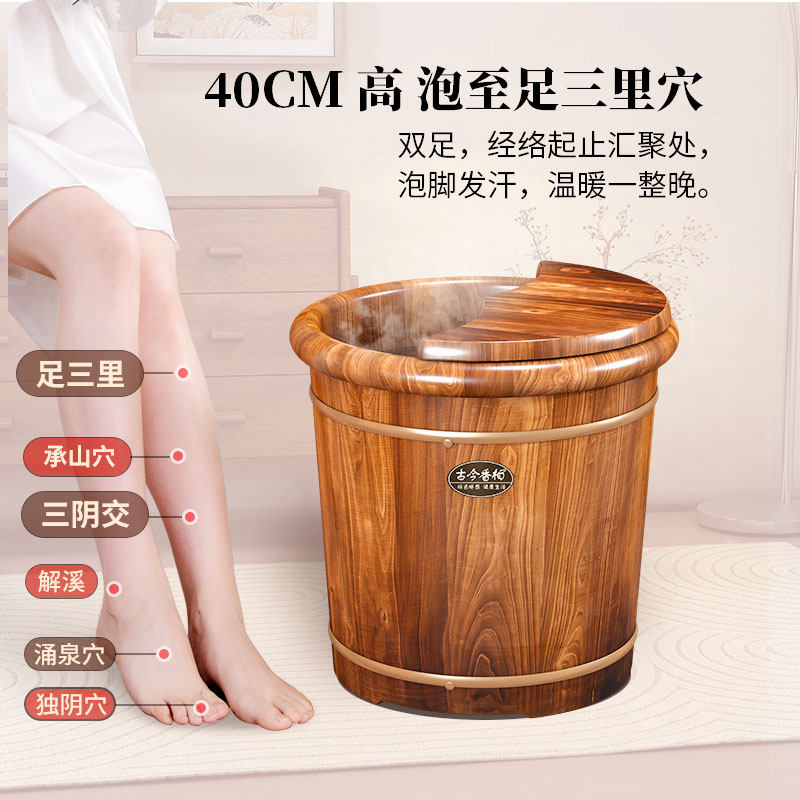 香柏木足浴桶泡脚木桶带盖浴足实木泡洗脚木盆小腿桶加高加厚40cm