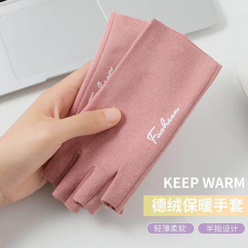 新款办公手套女冬季发热德绒保暖专用防寒半指触控屏幕学生工作骑