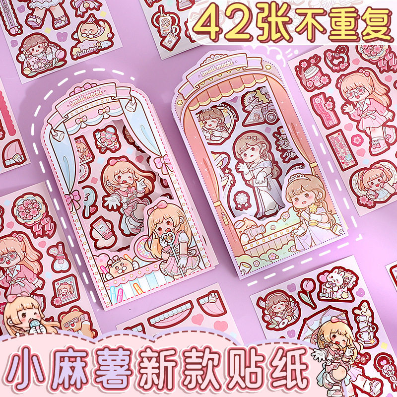 萌崽新款学霸学渣果冻贴纸安静书儿童免裁剪手工粘贴DIY女孩趣味玩具