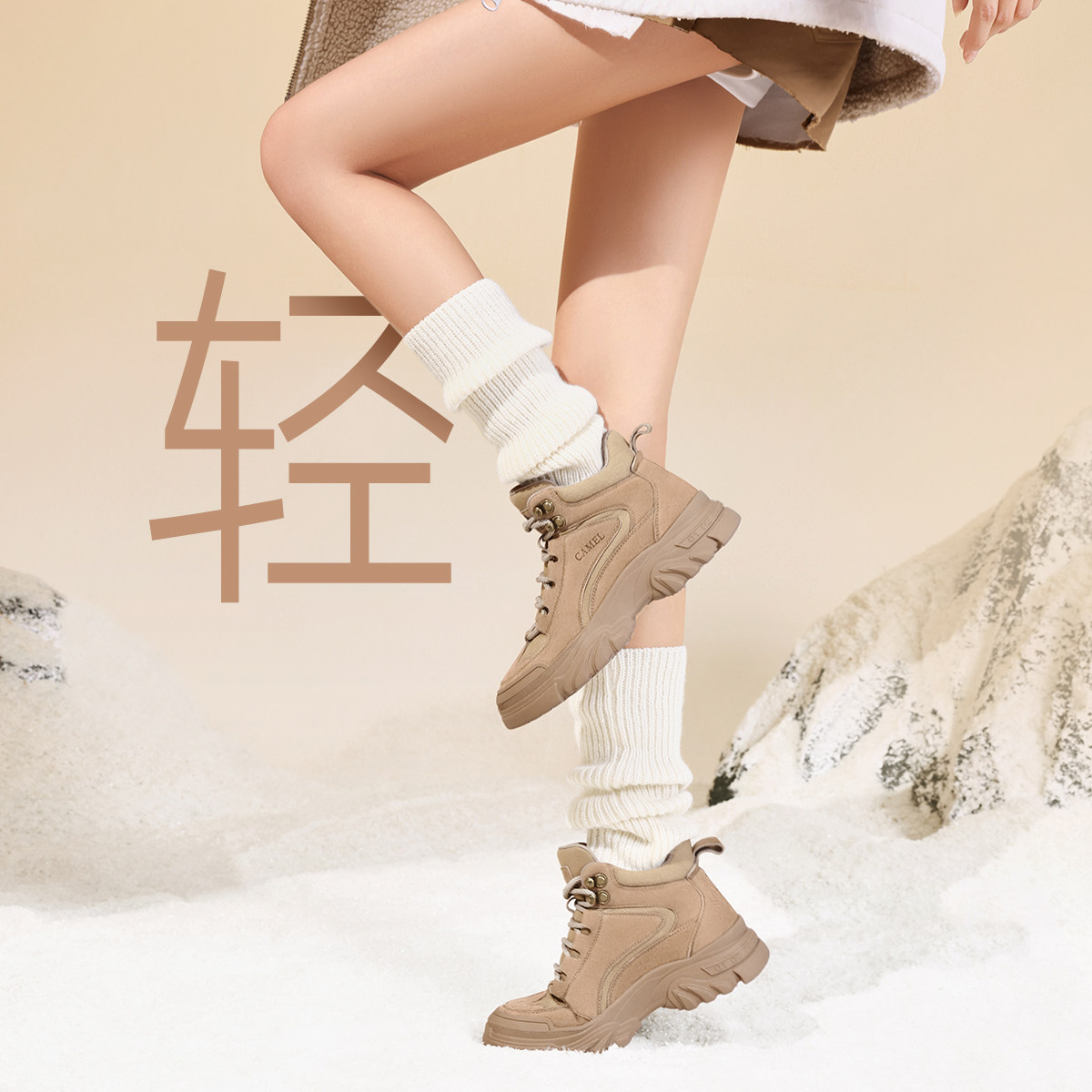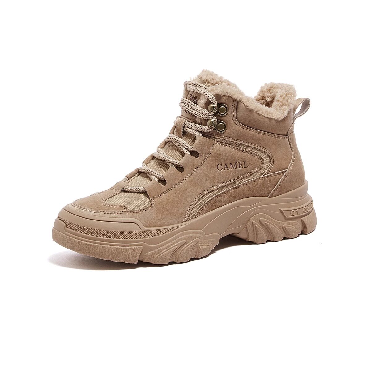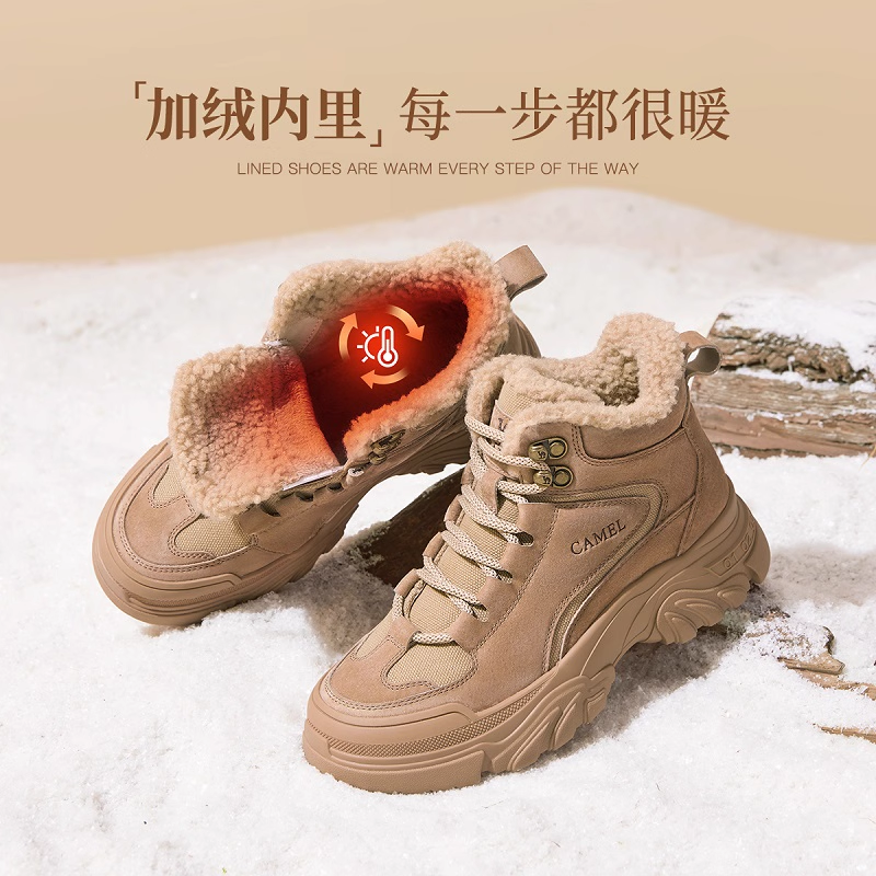 骆驼女鞋2025年秋冬新款厚底保暖高帮户外工装加绒东北雪地靴棉鞋