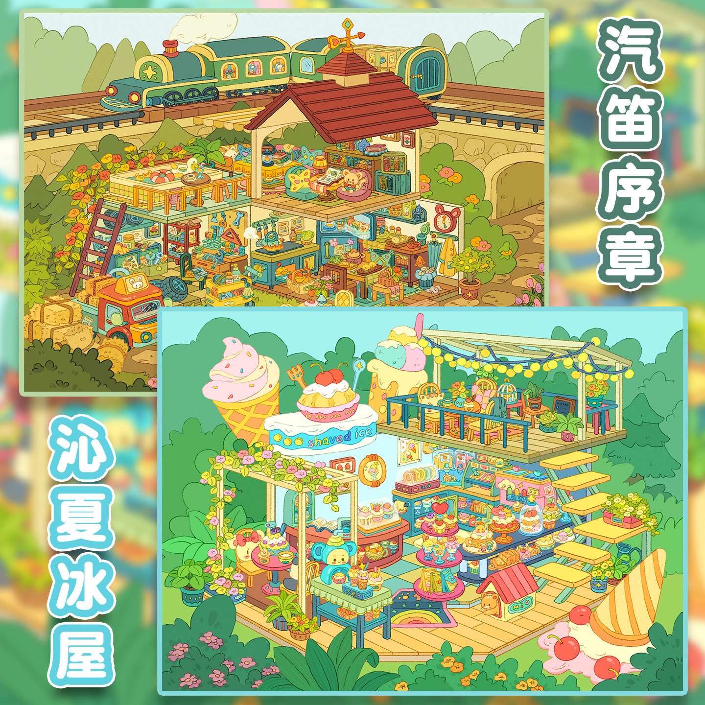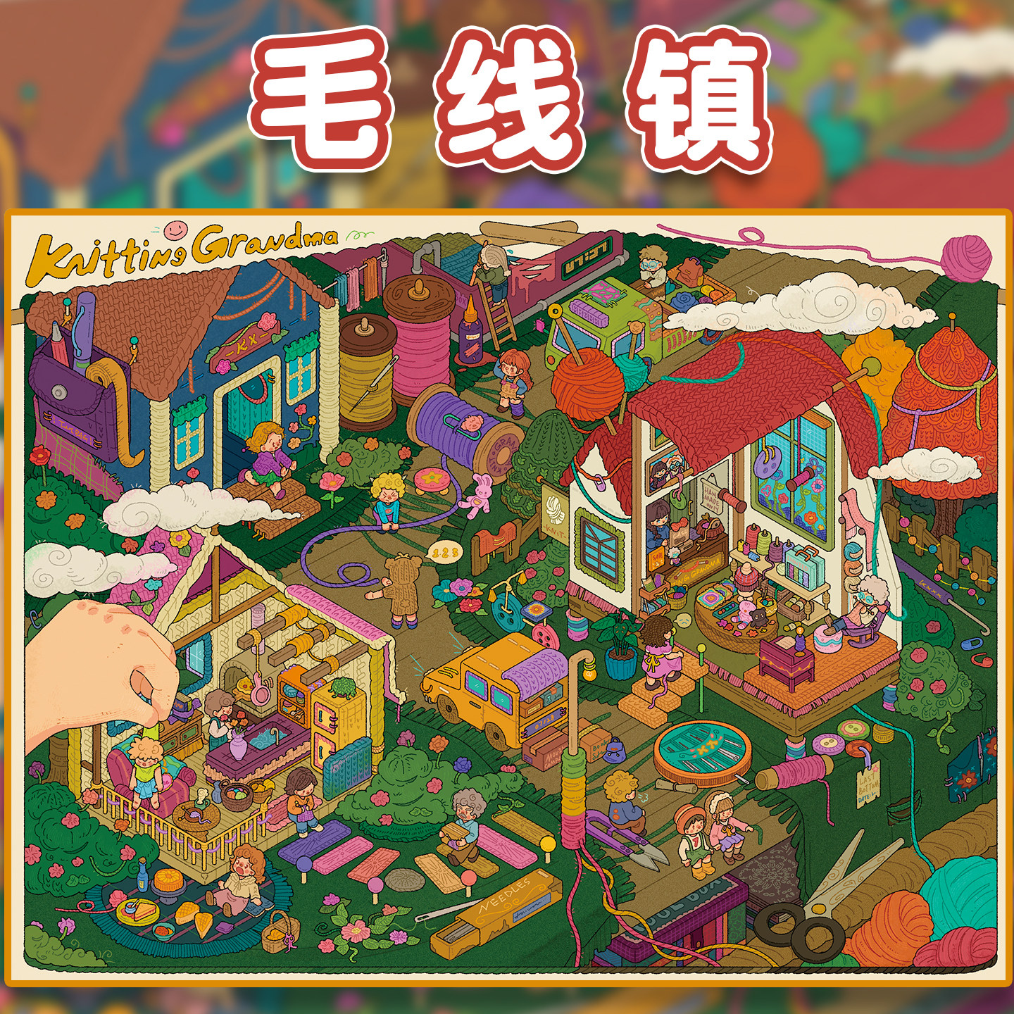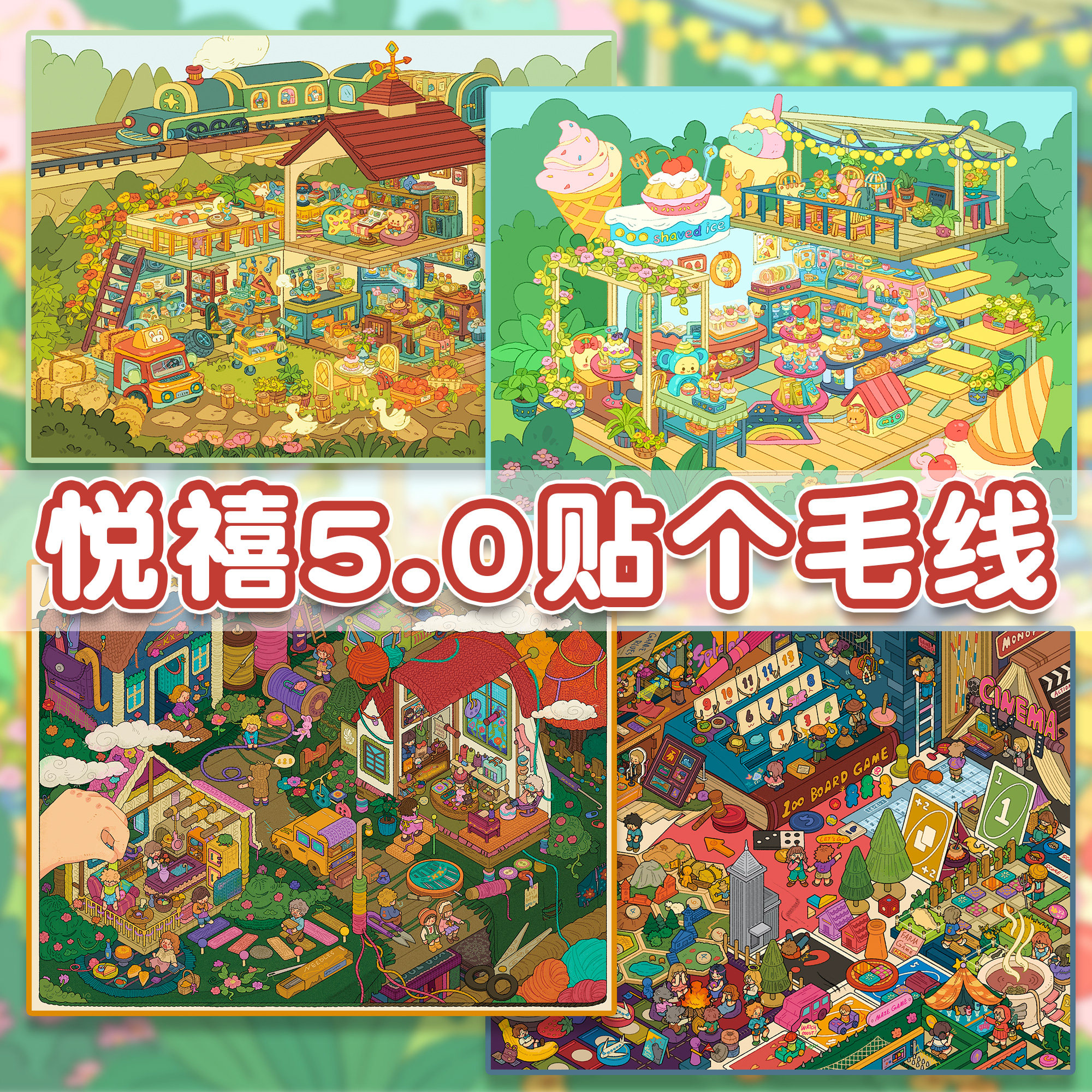 悦禧5.0贴个毛线系列造景贴纸毛线镇一起玩桌游特油工艺大号微缩场景3D立体小屋贴画手帐手工diy拼图玩具女孩