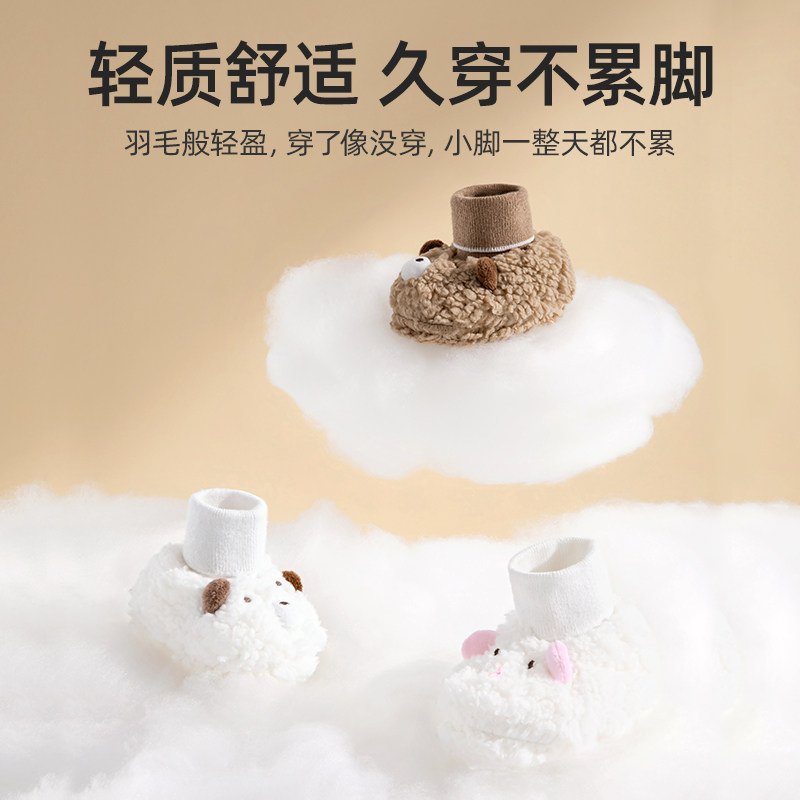 贝肽斯宝宝棉鞋秋冬款加绒加厚保暖婴幼儿室内鞋0-3岁婴儿护脚套