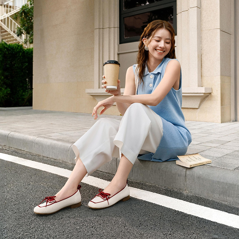 Pansy盼喜26春夏一脚蹬乐福鞋女平底休闲单鞋蝴蝶结懒人鞋轻舒适