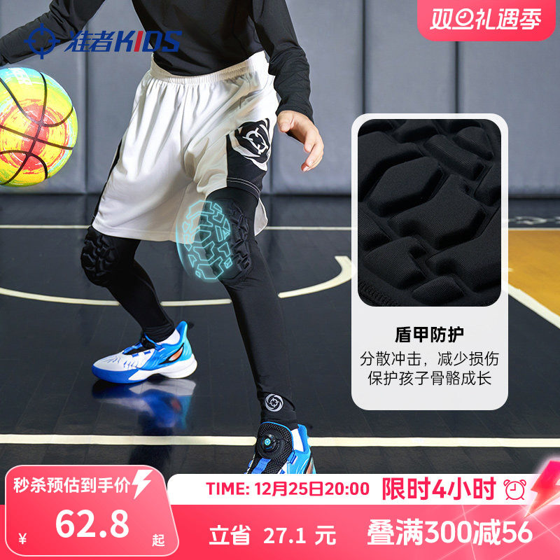 准者儿童护膝裤篮球足球膝盖护具打底裤一体防撞防摔运动裤紧身裤