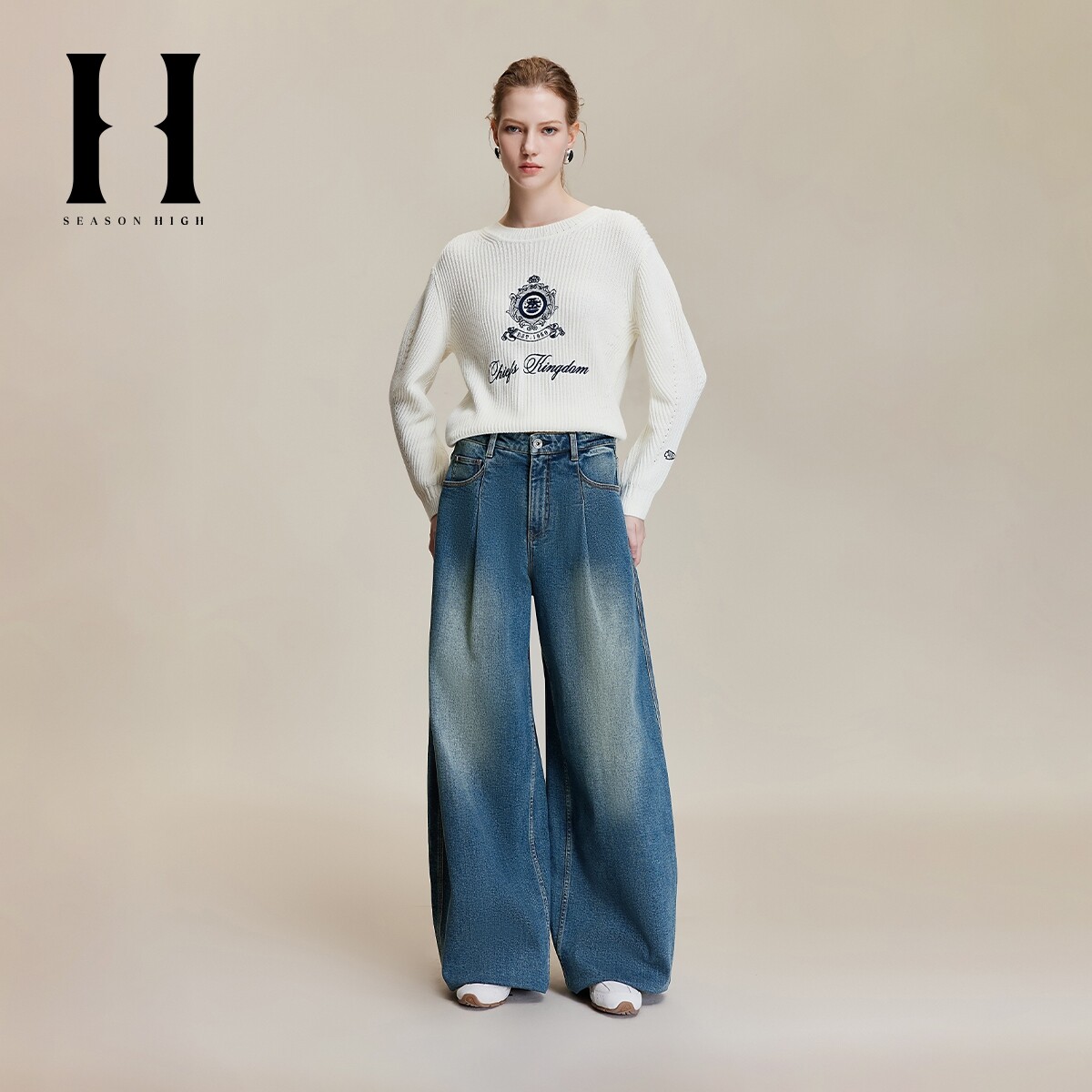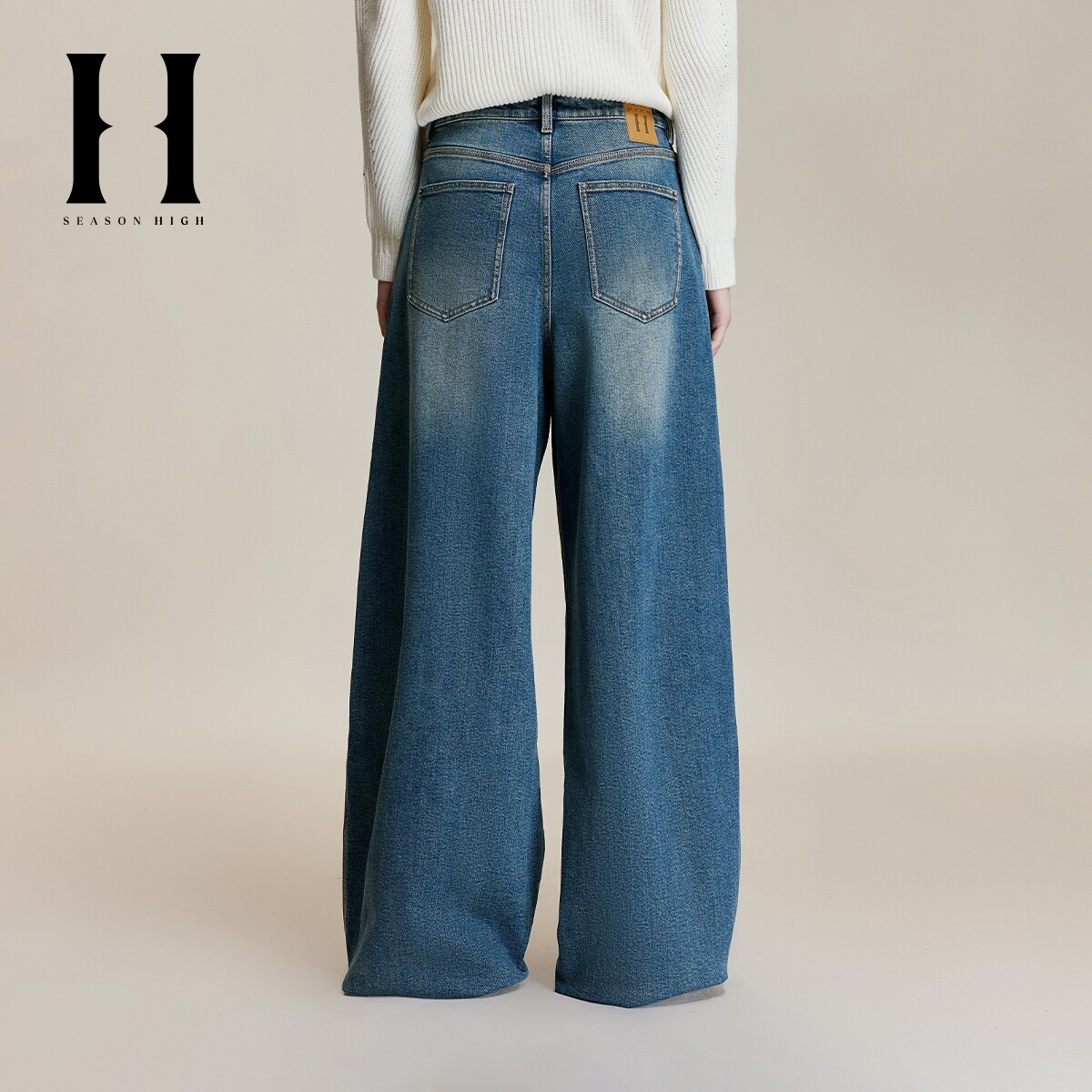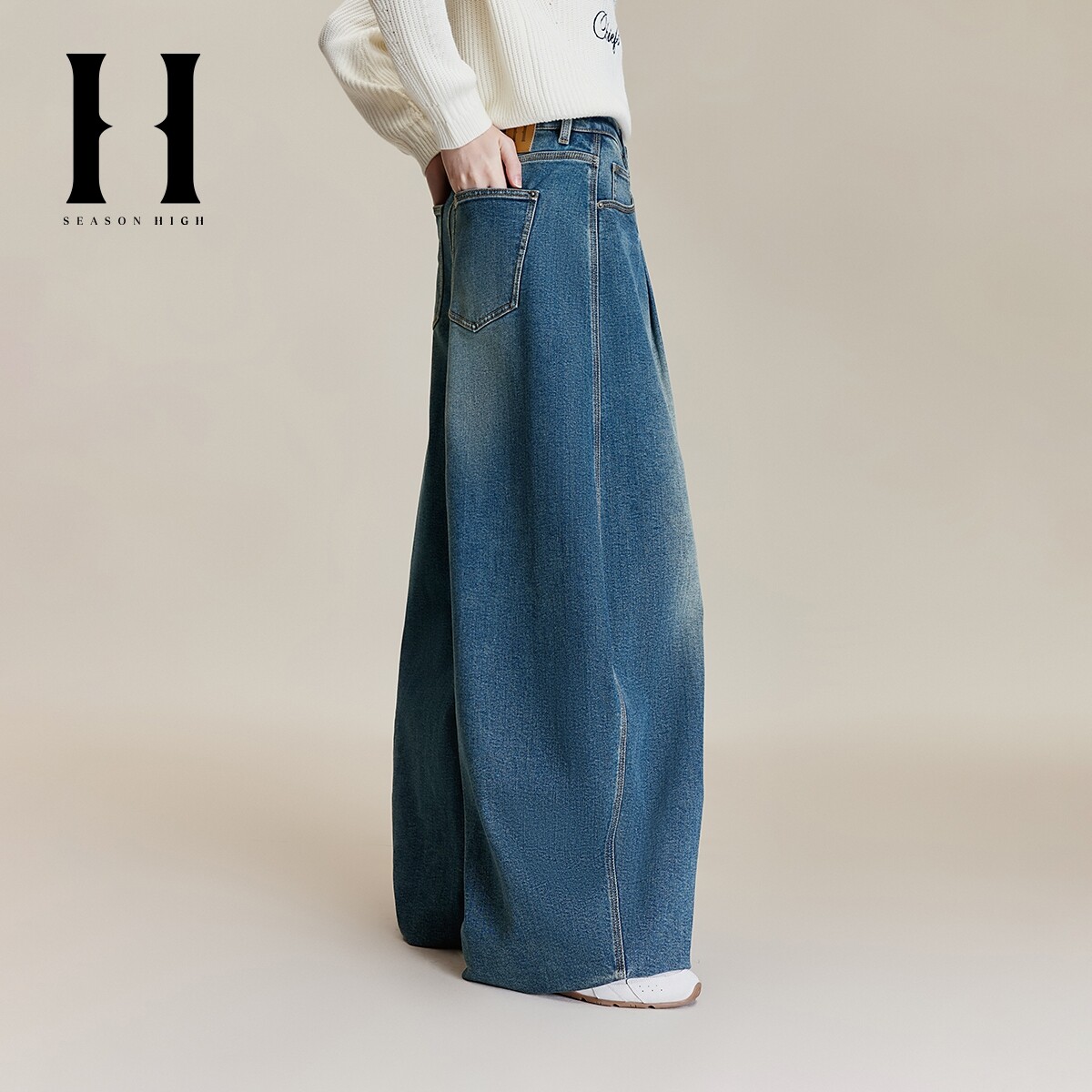 SEASONHIGH女士春季款牛仔裤宽松立体剪裁零钱袋logo皮标长裤女