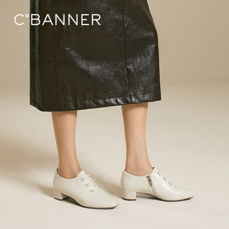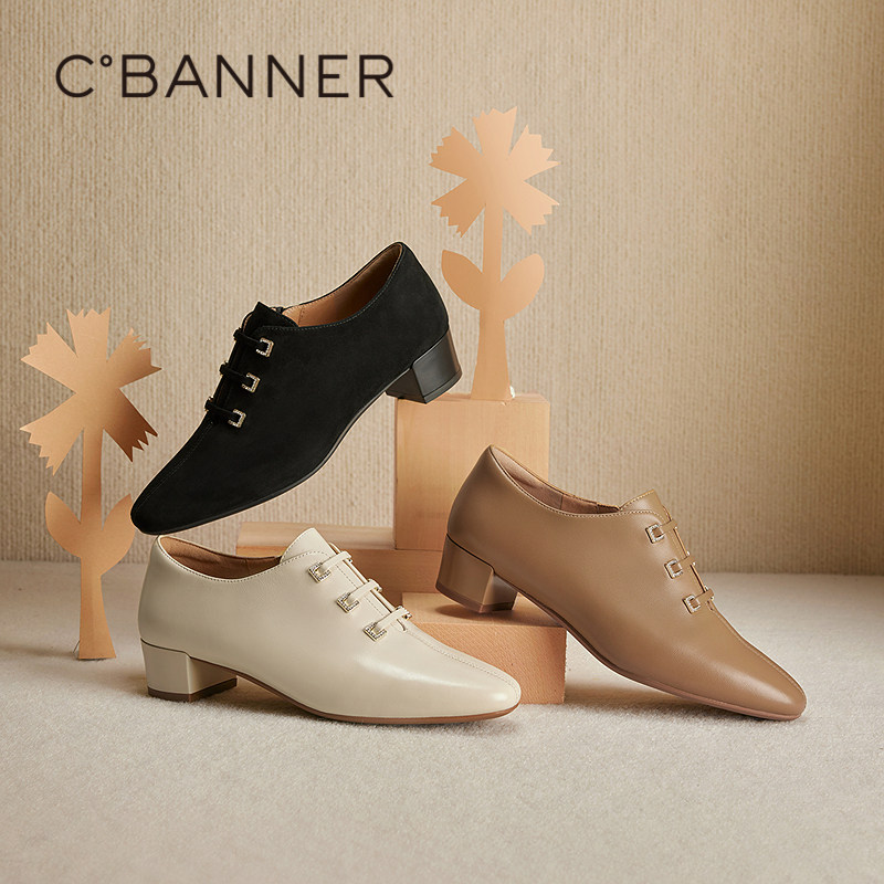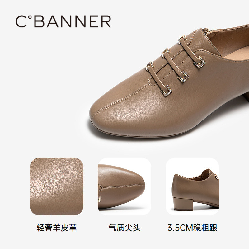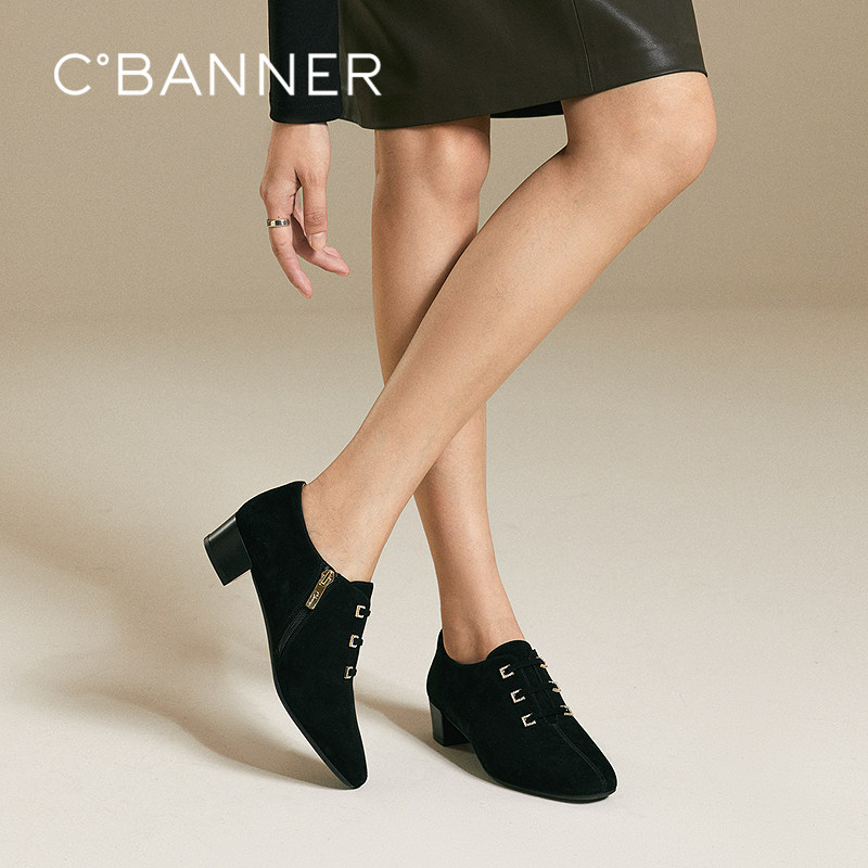 【静音系列】千百度羊皮尖头深口单鞋女2025秋季新款粗中跟短踝靴